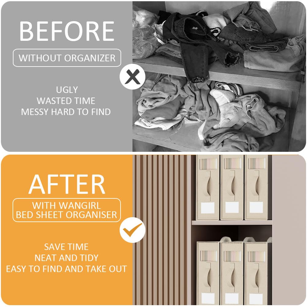 WANGIRL 6 Stück Aufbewahrung Bettwäsche Organizer, Faltbarer Aufbewahrungstasche für Bettlaken Kann in Kleiderschrank, Unterbett und in Schubladen, Aufbewahrungsbox für Bettlaken und Kleidung