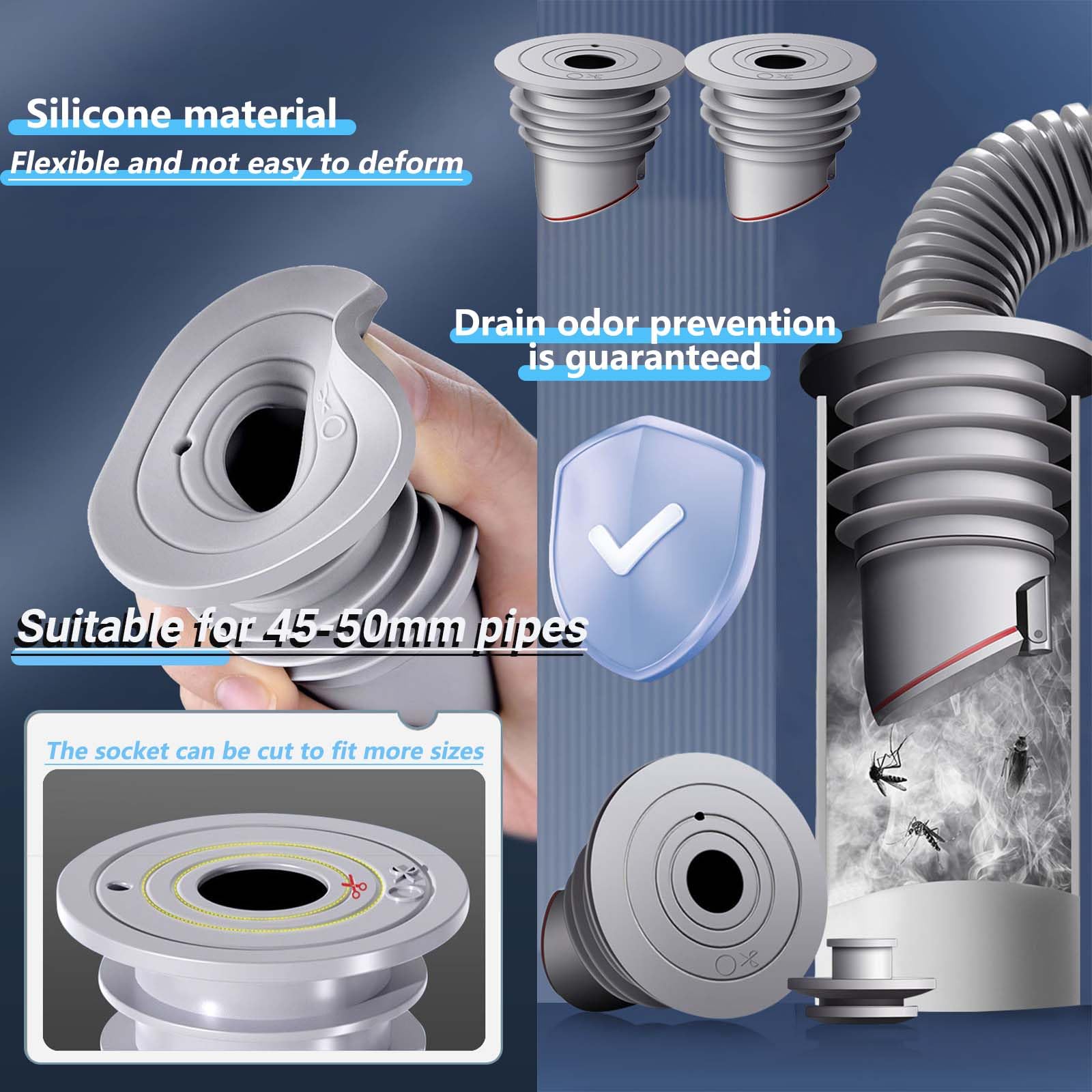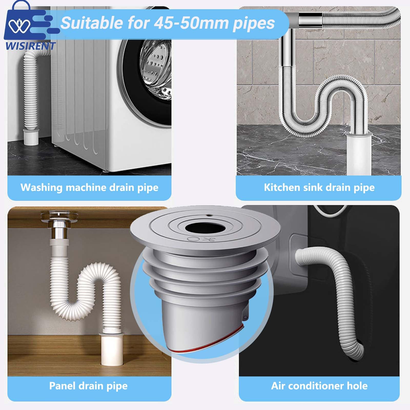 45-50mm Waschmaschinen Rohrdichtung WISIRENT, Grau Waschmaschinen-Ablaufschlauchdichtung, Washing Machine Drain Hose Seal, Waschmaschine Abfluss Dichtung Abflussrohr Dichtung für Zuhause, Küche, Bad