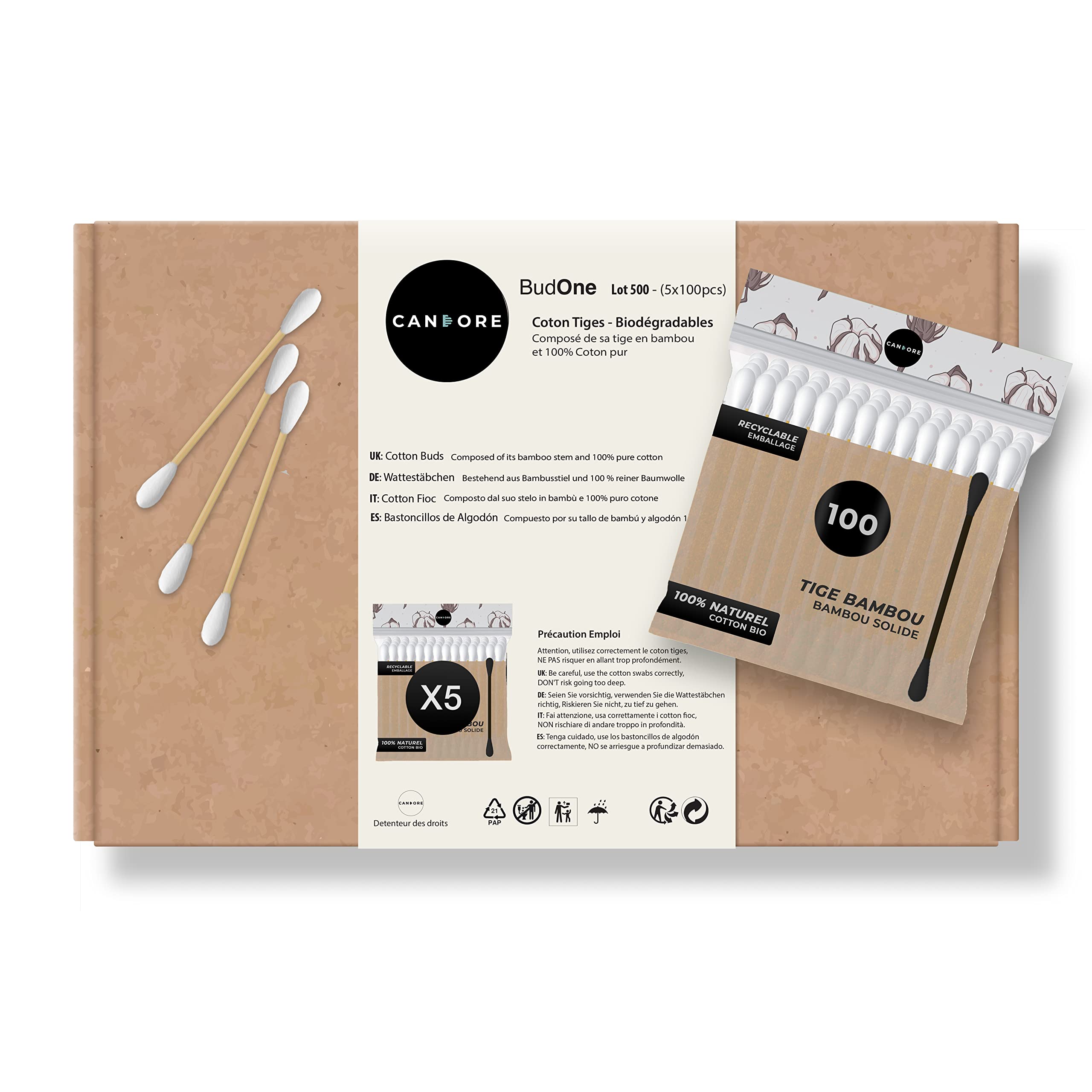 500 Wattestäbchen – stärkere Bambusstäbchen, weicher Wattekopf – biologisch abbaubar – Briefkastengrösse