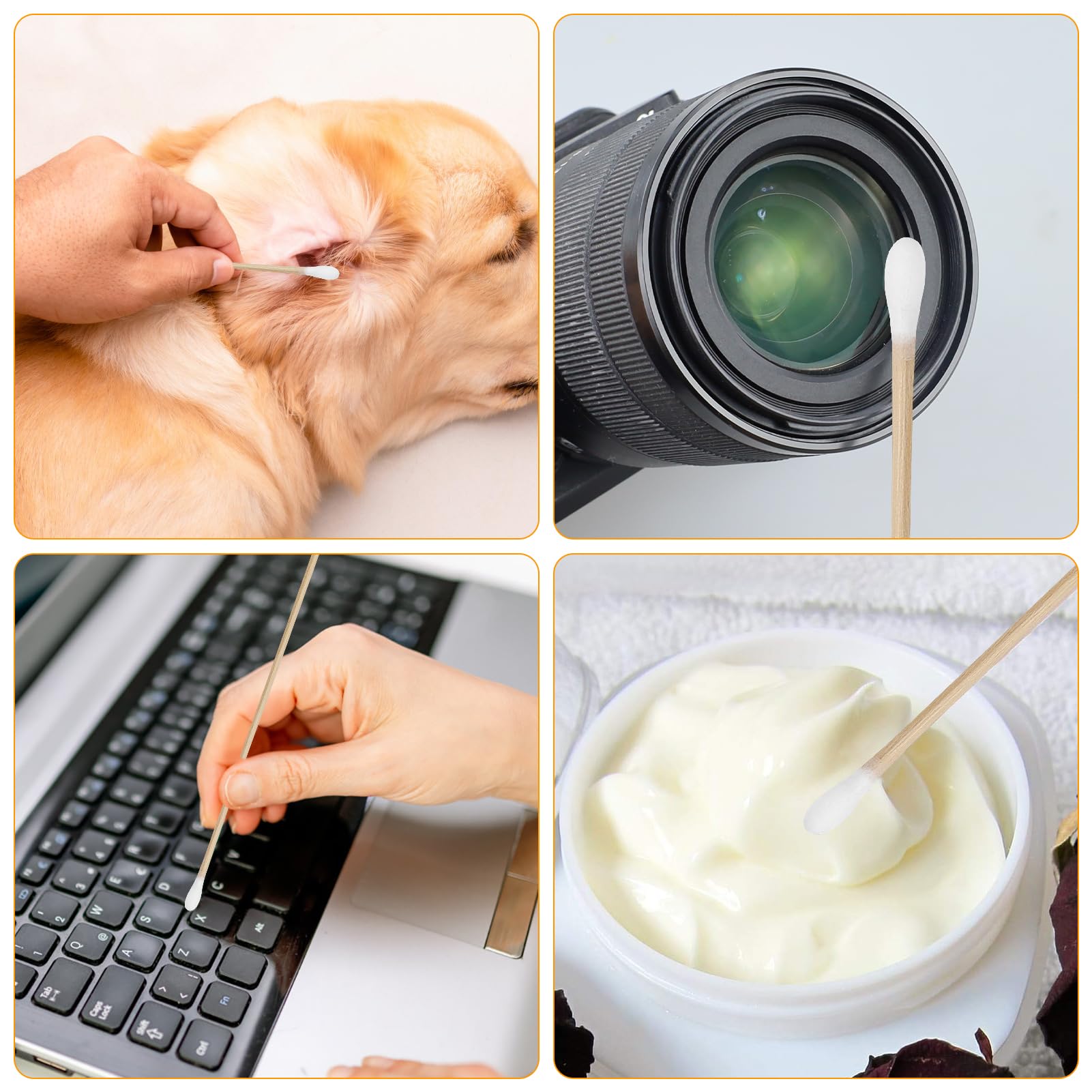 Wattestäbchen 200 Stück Langer Holzgriff Watteträger 15cm Reinigungsstäbchen für Kamera Tastatur Make-up Polieren Reinigung