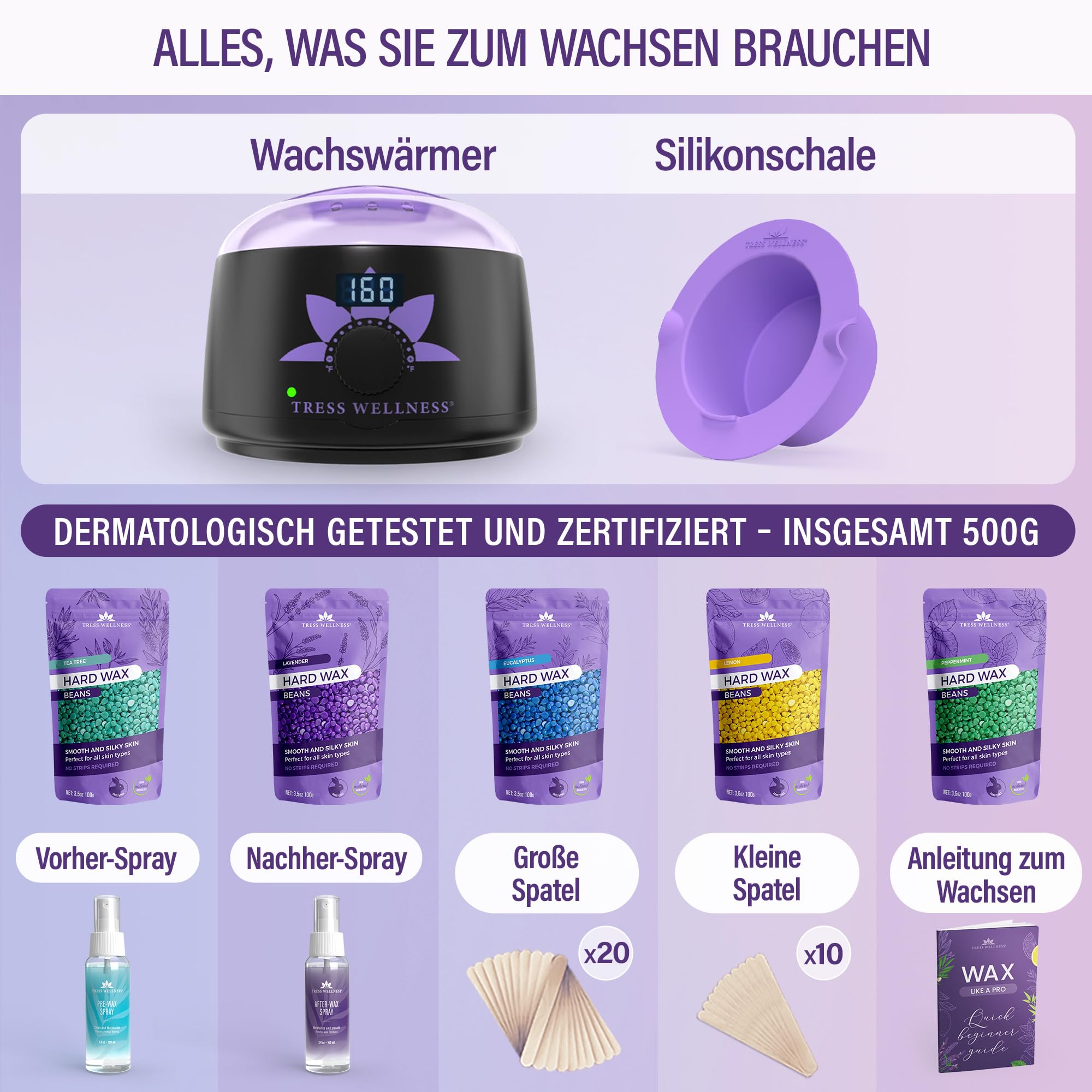 Waxing Wachswärmer set - wachsmaschine enthaarung - für Haarentfernung Perlen - Wax Warmer Kit- Maschine - Heisswachsgerät - Schwarz mit Silikonschale