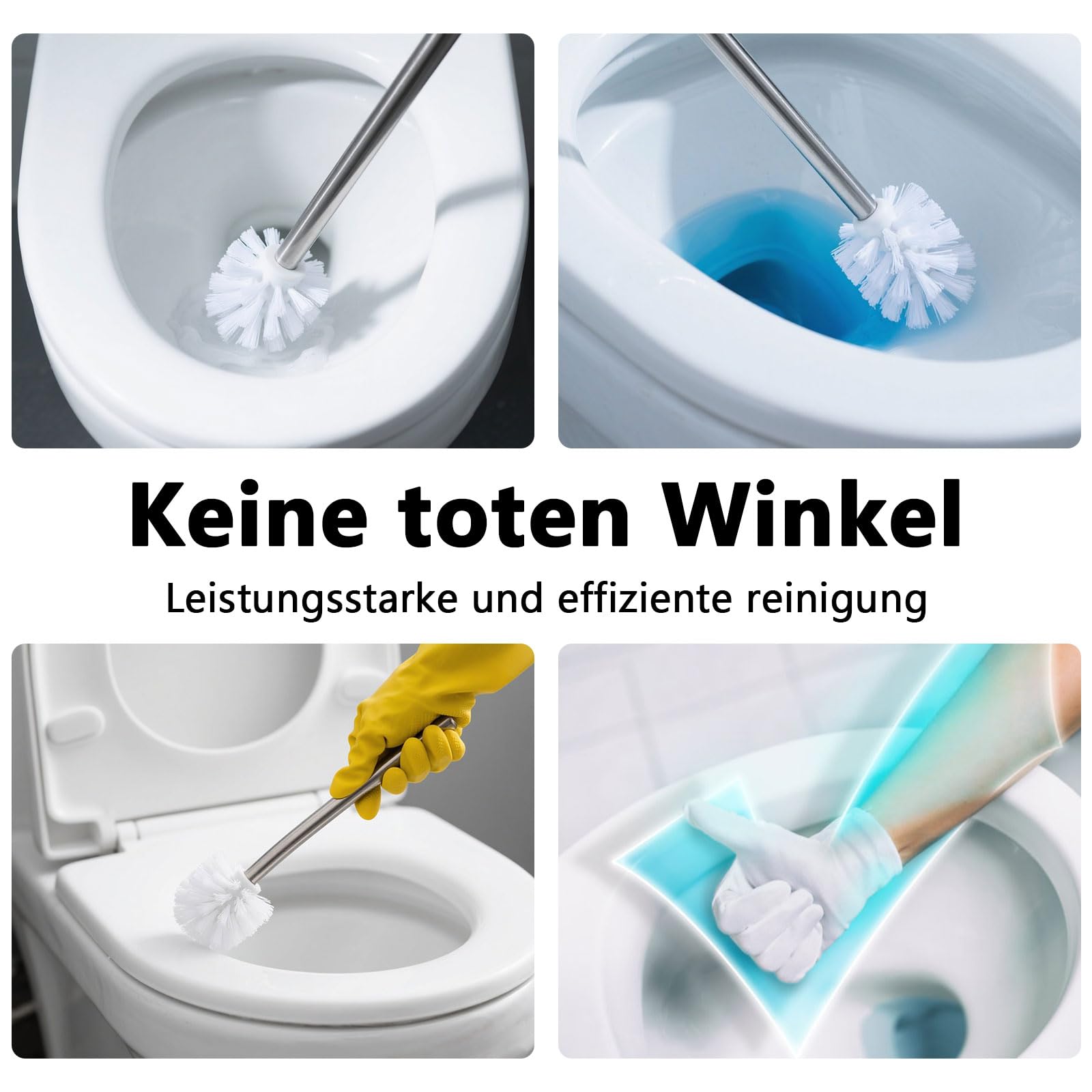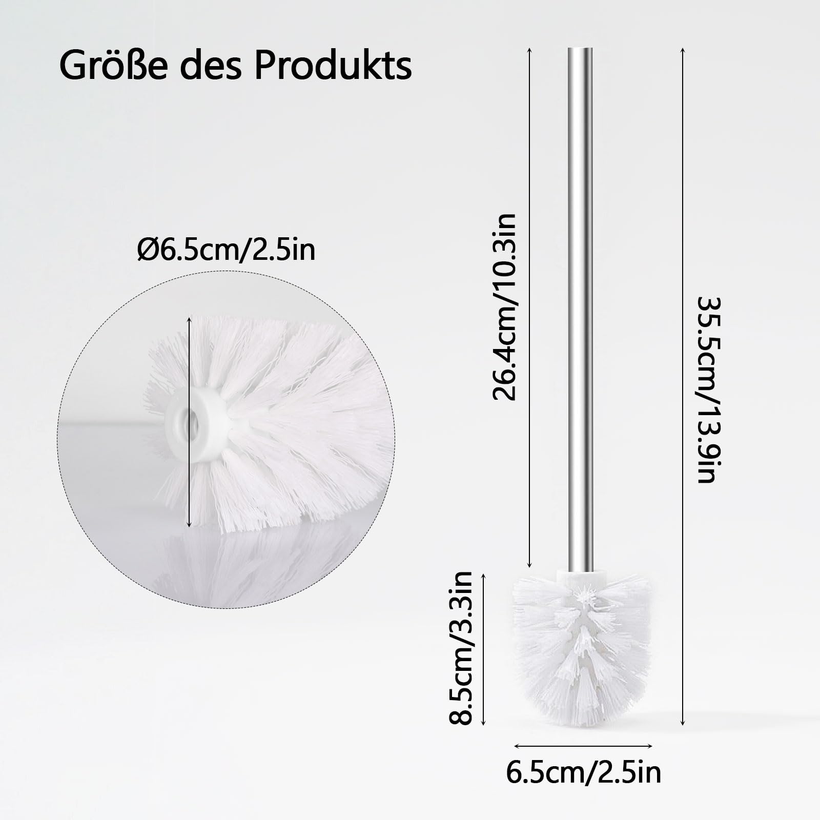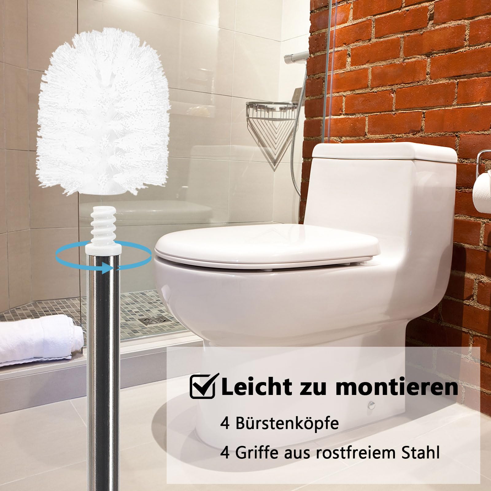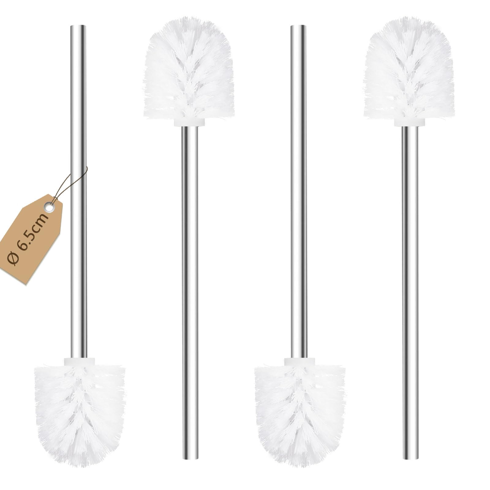 WC-Bürste, 4 Stück, Bürstenkopfdurchmesser 6,5 cm, WC-Bürsten mit Edelstahlgriff, Stehende Edelstahl-WC-Bürsten für Badezimmer, Toilette, Ergonomisch, Elegant, Langlebig (Ø 6.5cm, Weiss)