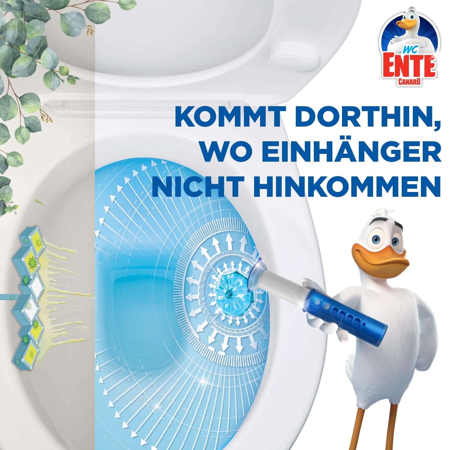 WC-Ente Frische-Siegel Nachfüller, körbchenloser WC-Reiniger, WC Duft, Eukalyptus, 2 Nachfüller (2 Stück) (Packung mit 2)