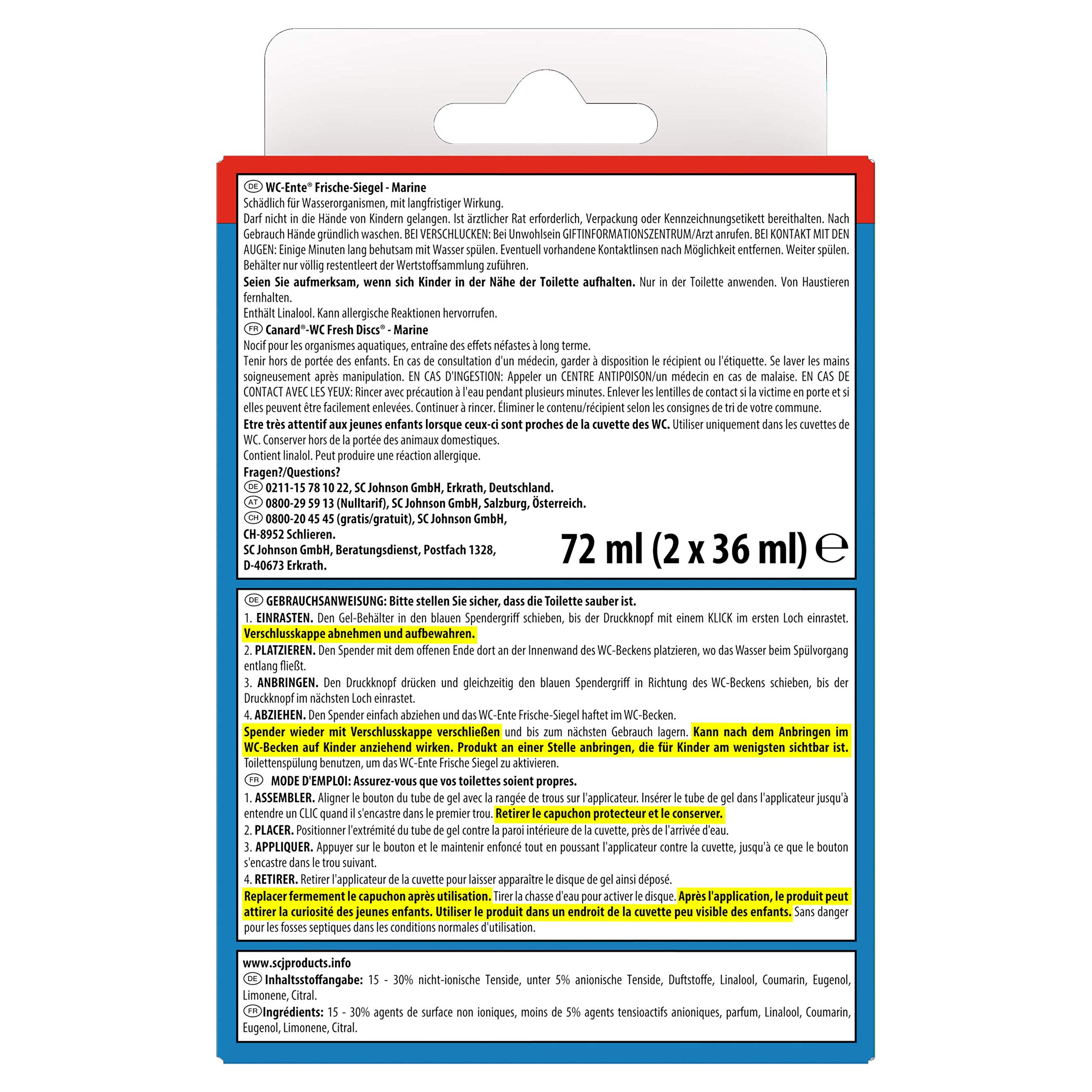 - Lieferumfang: 2 WC-Ente Frische-Siegel Nachfüller, Duft: Marine, Volumen: 2 x 36 ml (Doppelpack)