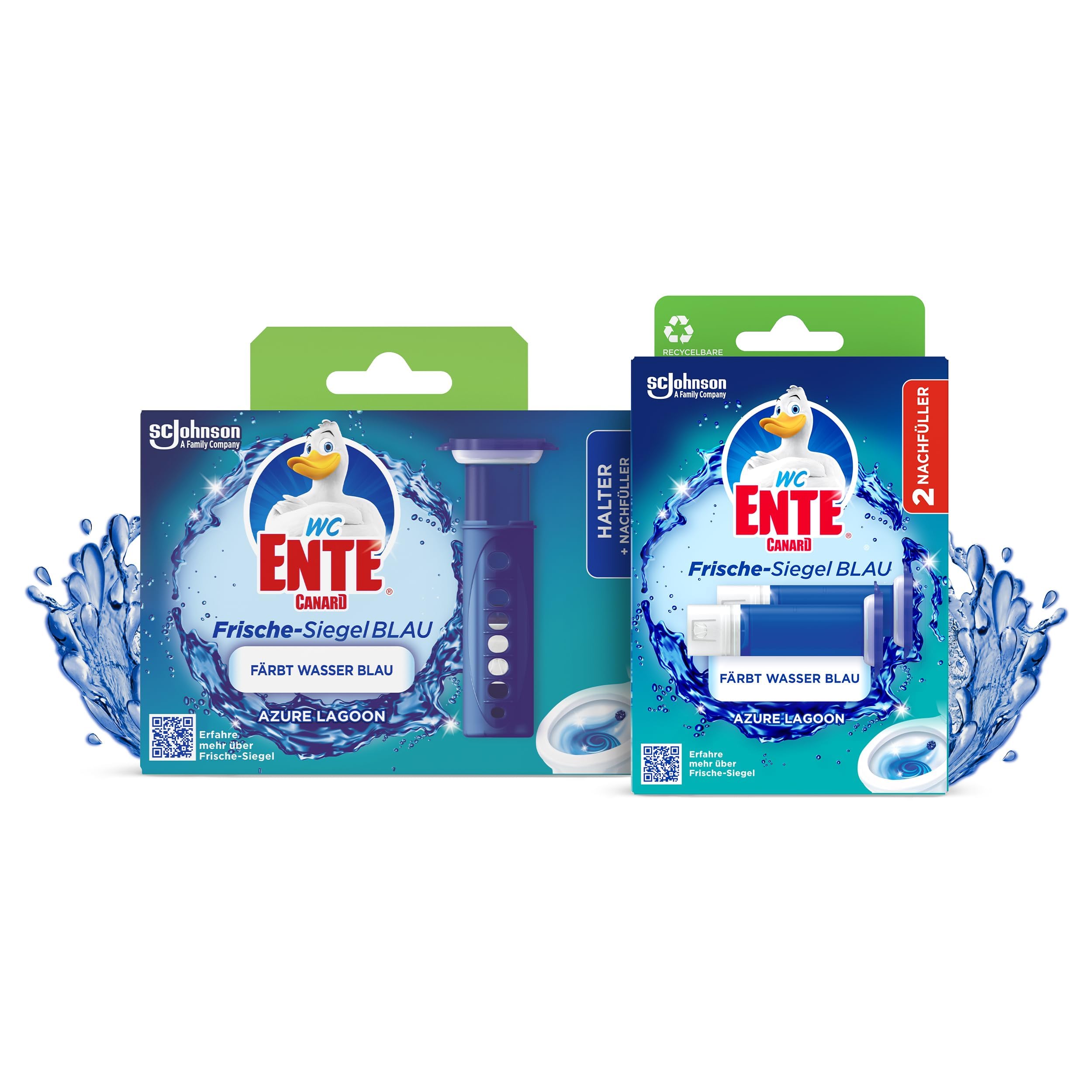 WC-Ente Frische Siegel Vorteilspack,Starter Set (inkl. Nachfüller) + Nachfüller (2 St.),körbchenloser WC-Reiniger, Azure Lagoon