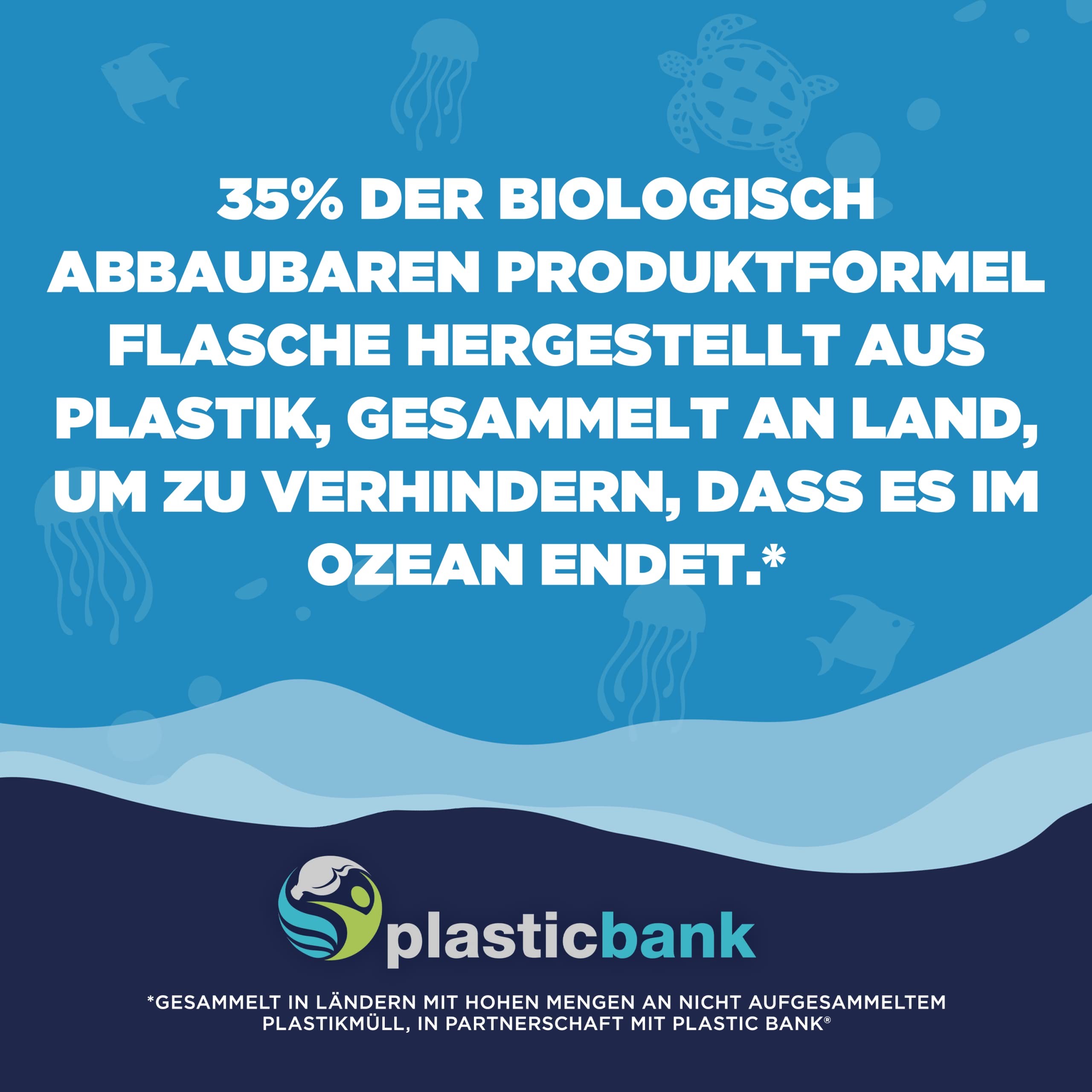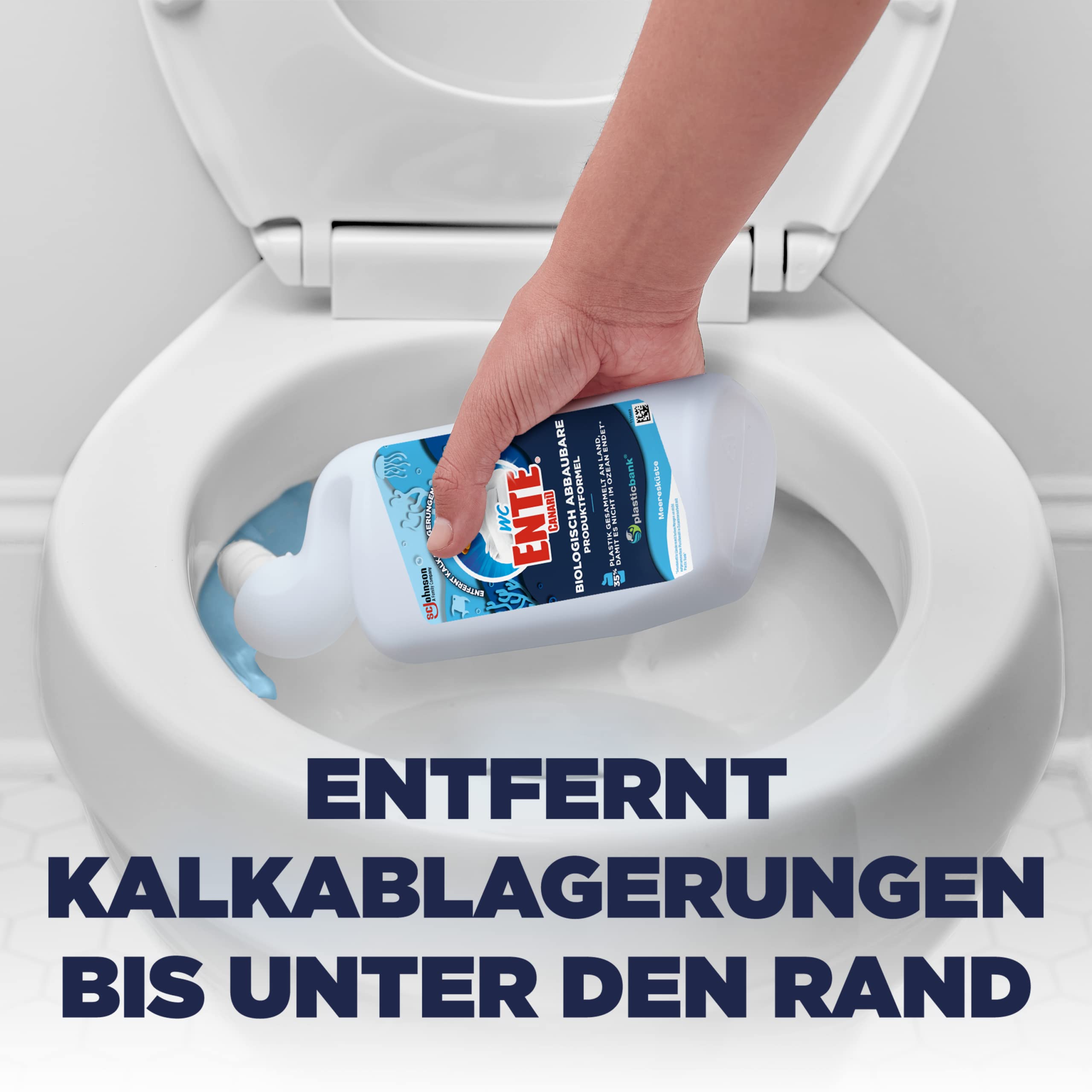 • Die Flasche des Toilettenreinigers besteht aus 50% Plastik gesammelt an Land, damit es nicht im Ozean endet in Partnerschaft mit Plastic Bank