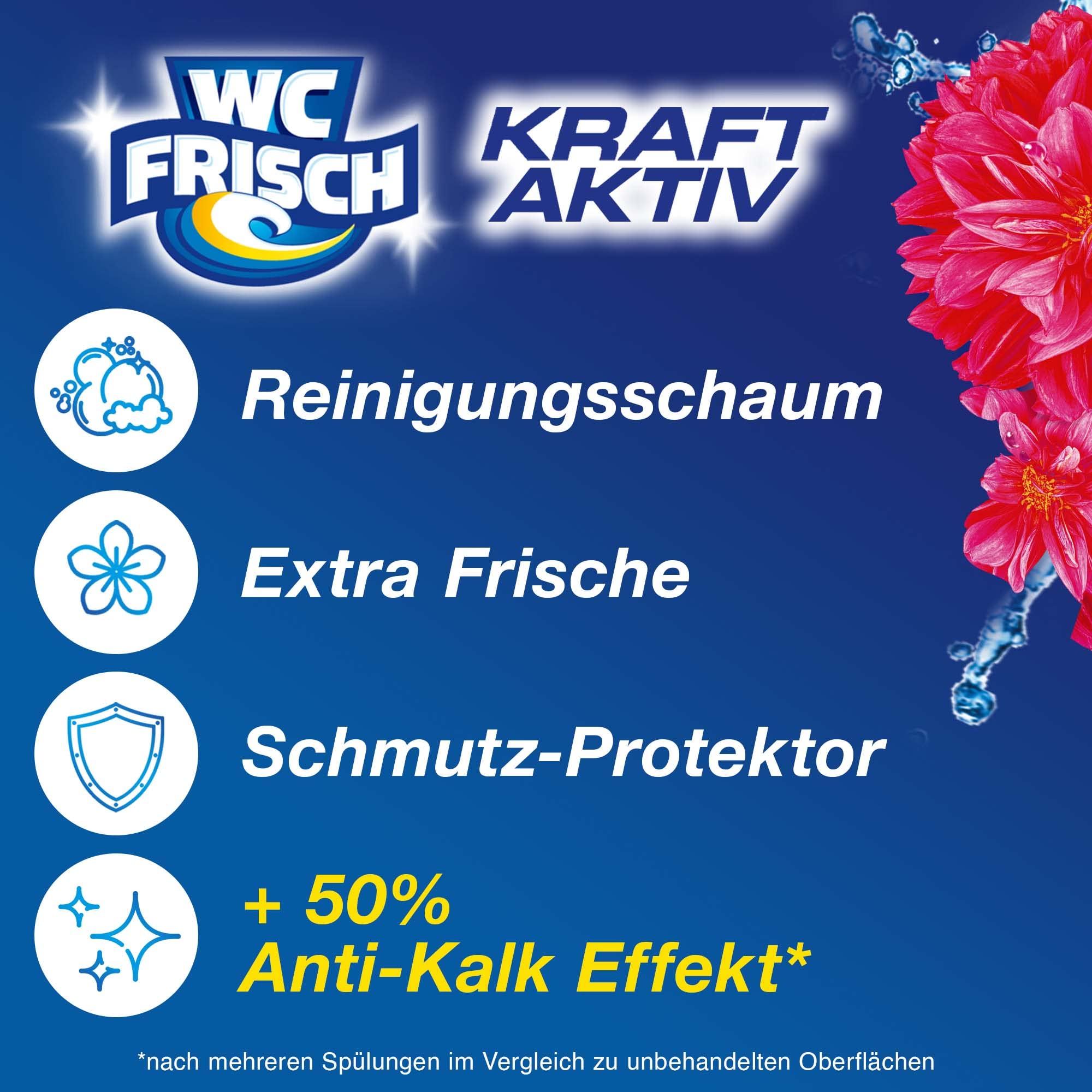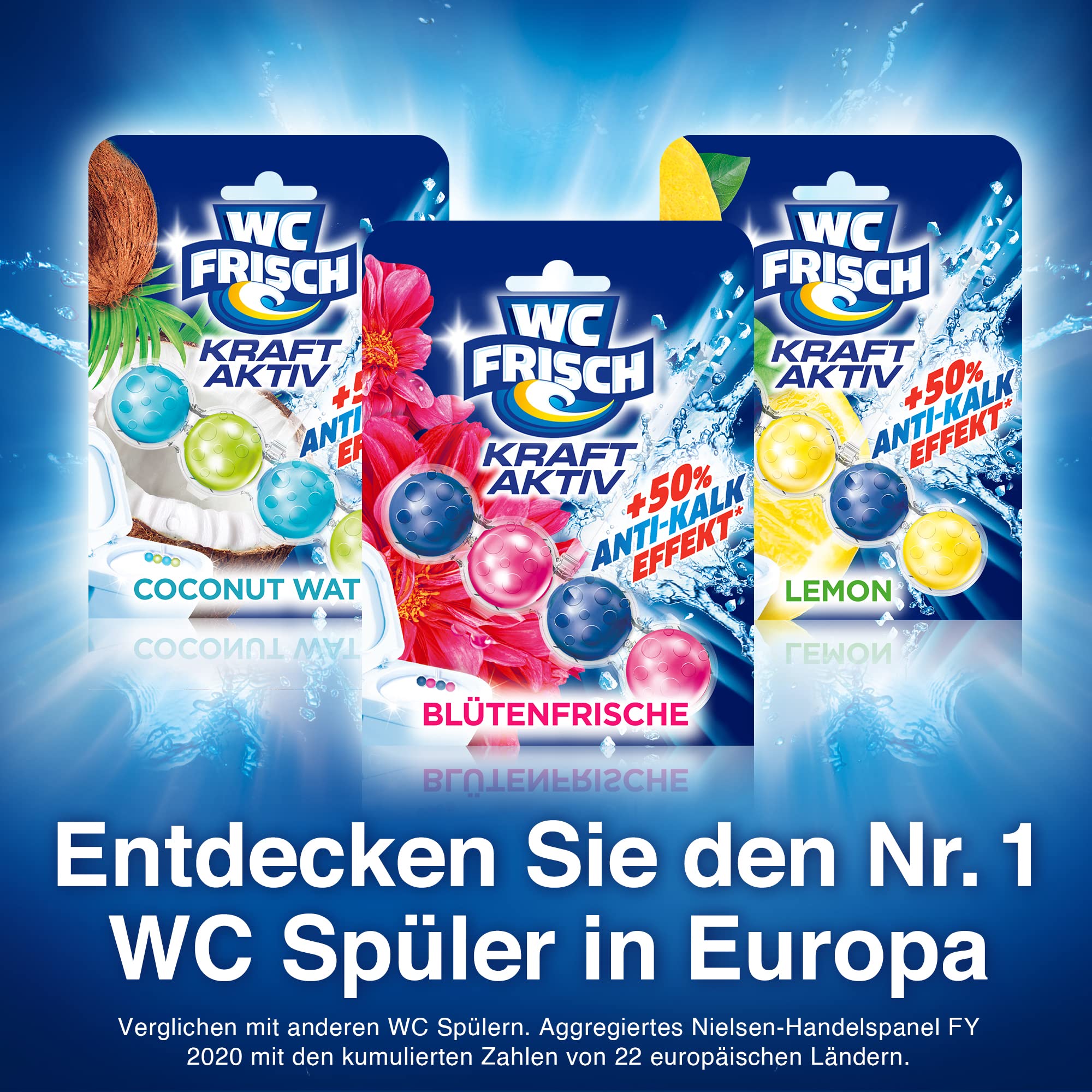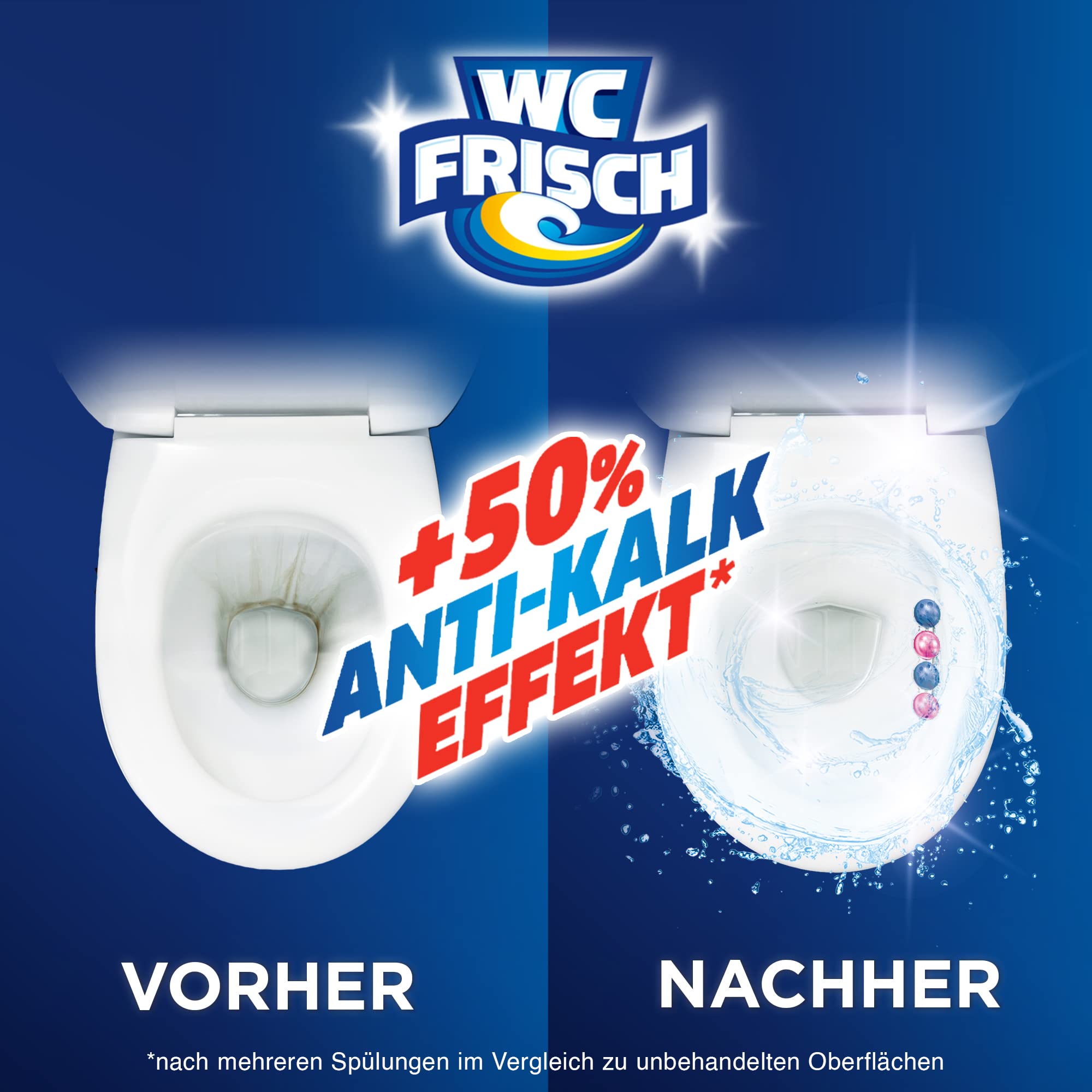 WC FRISCH Kraft Aktiv Blauspüler Blütenfrische, WC-Reiniger, 10 Stück, Farbspüler mit 50 Prozent mehr Glanz