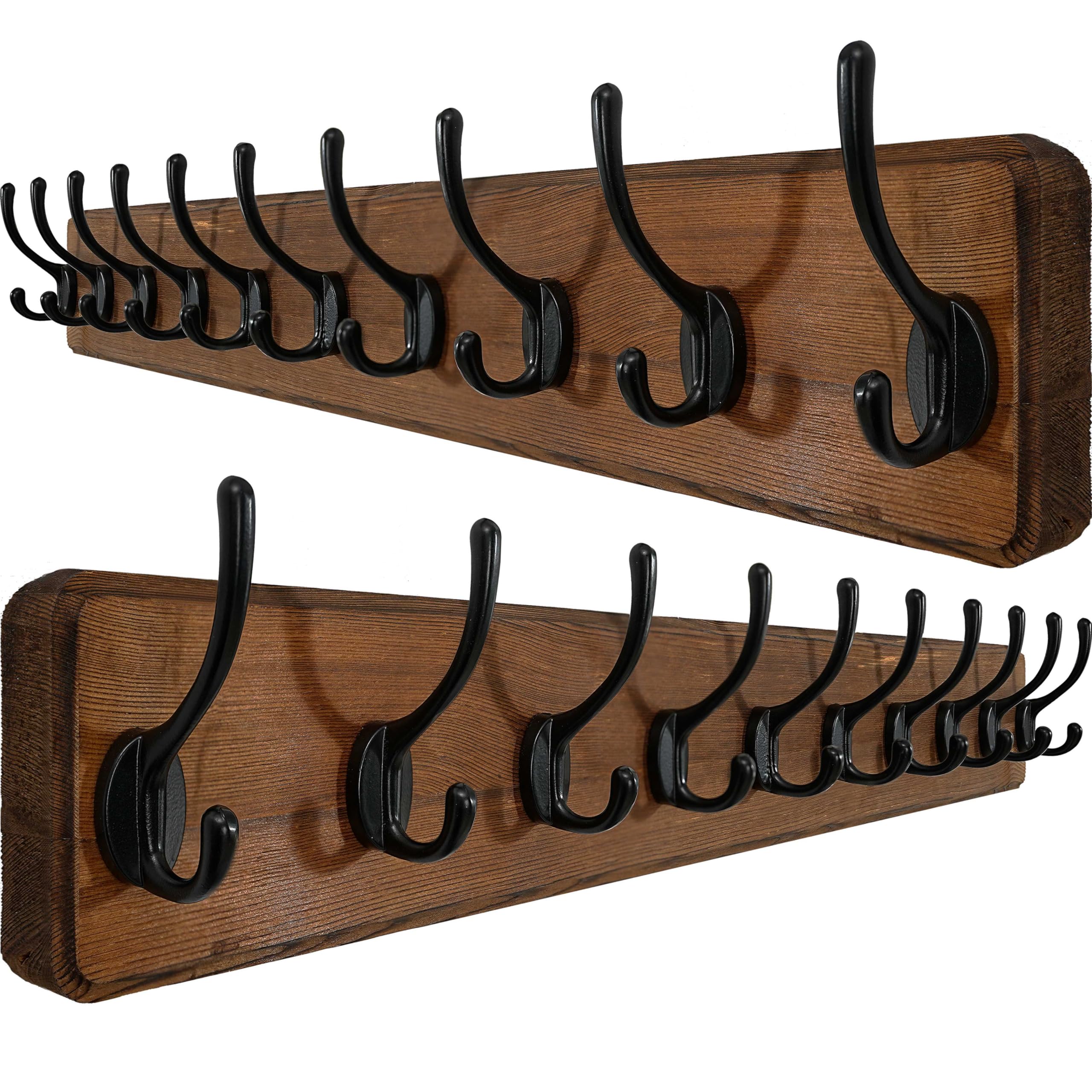 WEBI Garderobenhaken,98cm Lang Garderobenleiste,Wandgarderobe Holz mit 10 Haken,Kleiderhaken Wand,Hakenleiste Garderobe,Jackenhalter Wand für Mäntel,Jacken,Rustikal Braun,2 Stück