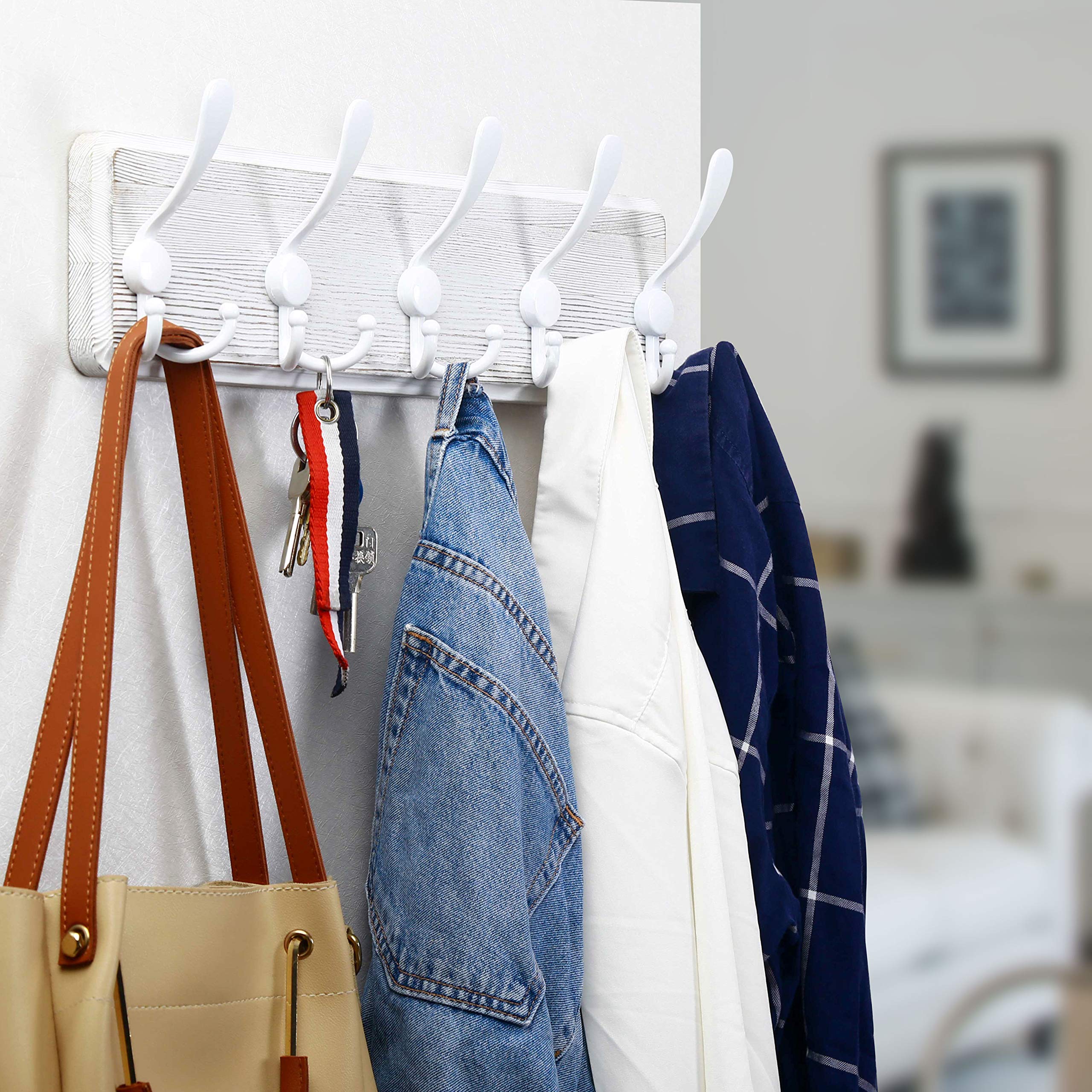 WEBI Garderobenleiste,Garderobenhaken mit 5 Dreifachhaken,Wandgarderobe Holz,Kleiderhaken Wand,Hakenleiste Garderobe,Jackenhalter Wand für Mäntel,Jacken,Weiss,2 Stück