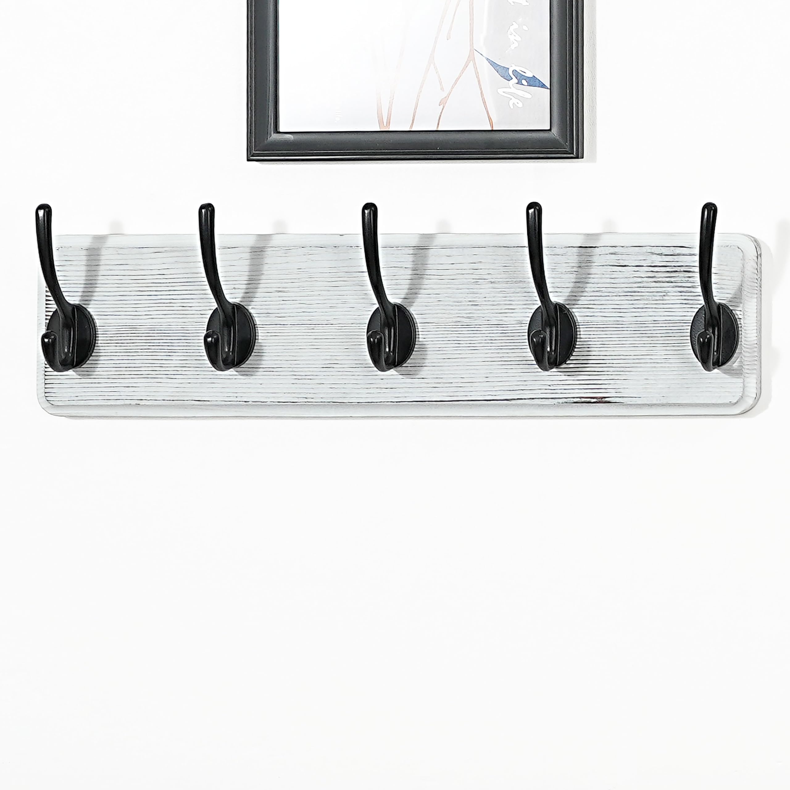 WEBI Garderobenleiste,Garderobenhaken,Wandgarderobe Holz mit 5 Haken,Kleiderhaken Wand,Hakenleiste Garderobe,Jackenhalter Wand für Mäntel,Jacken,Schwarz auf Weiss