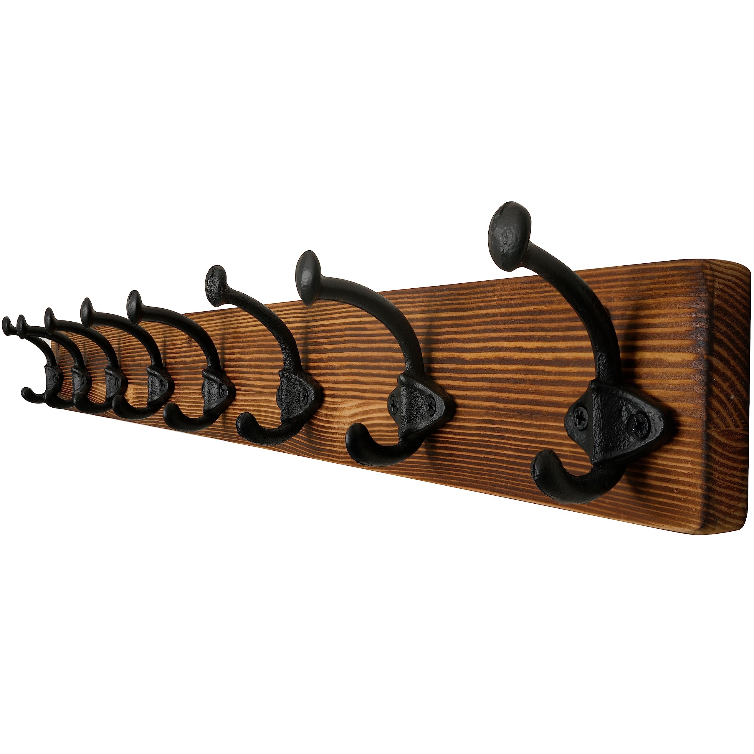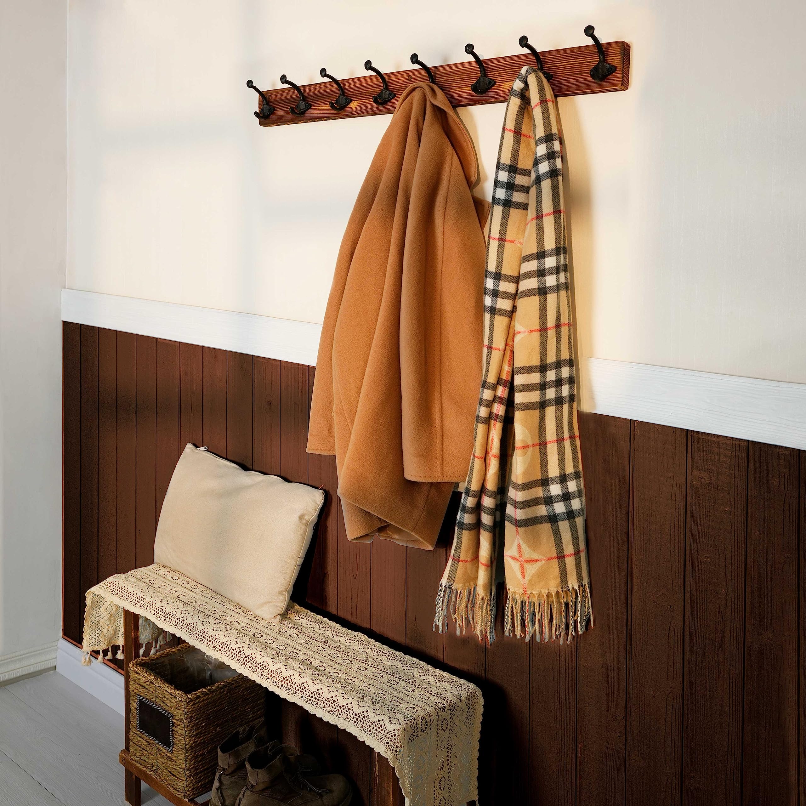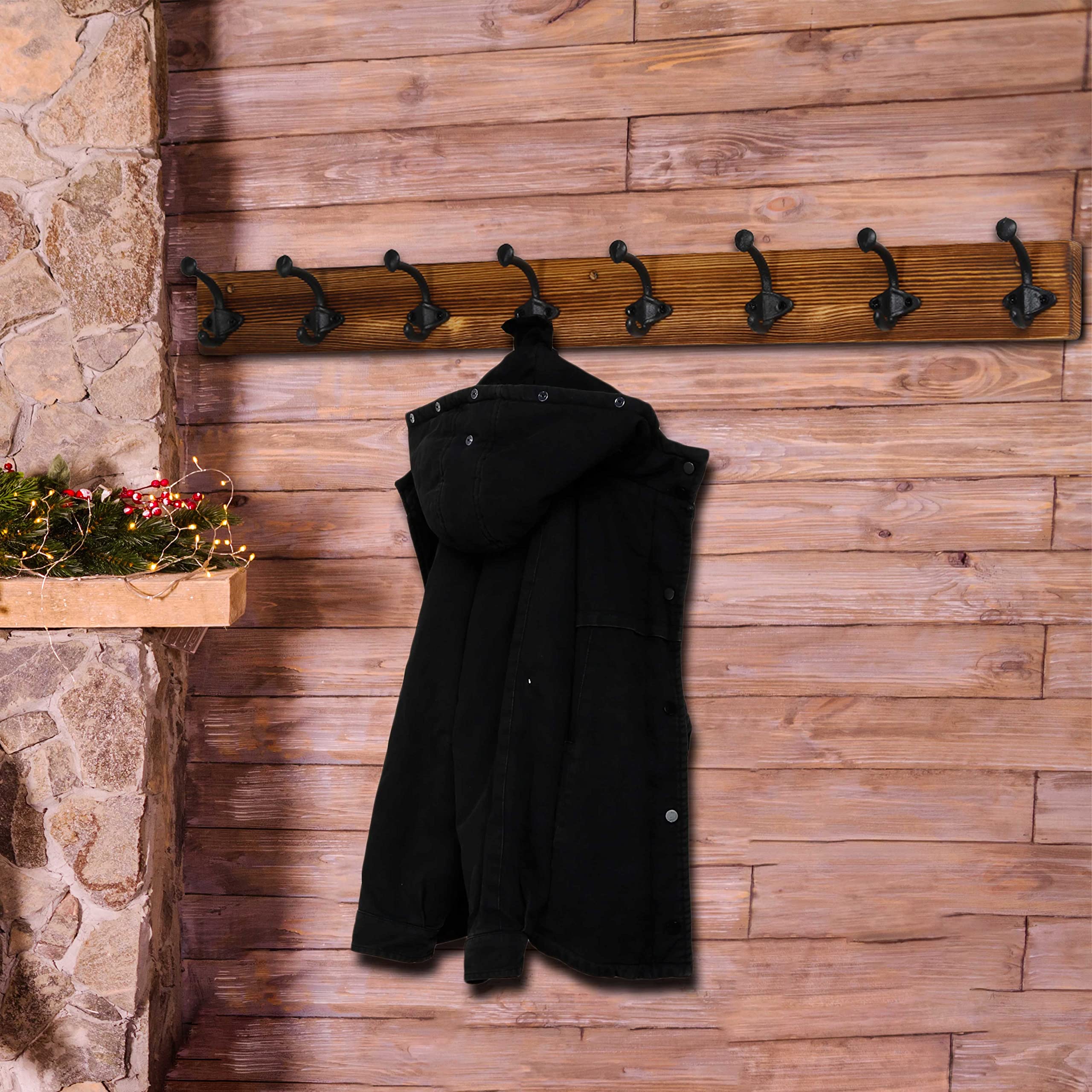 WEBI Garderobenleiste,Wandgarderobe Holz mit 8 Haken Gusseisen,Garderobenhaken Wand Garderobe Hakenleiste,Kleiderhaken Wand für Mäntel,Jacken,Braun