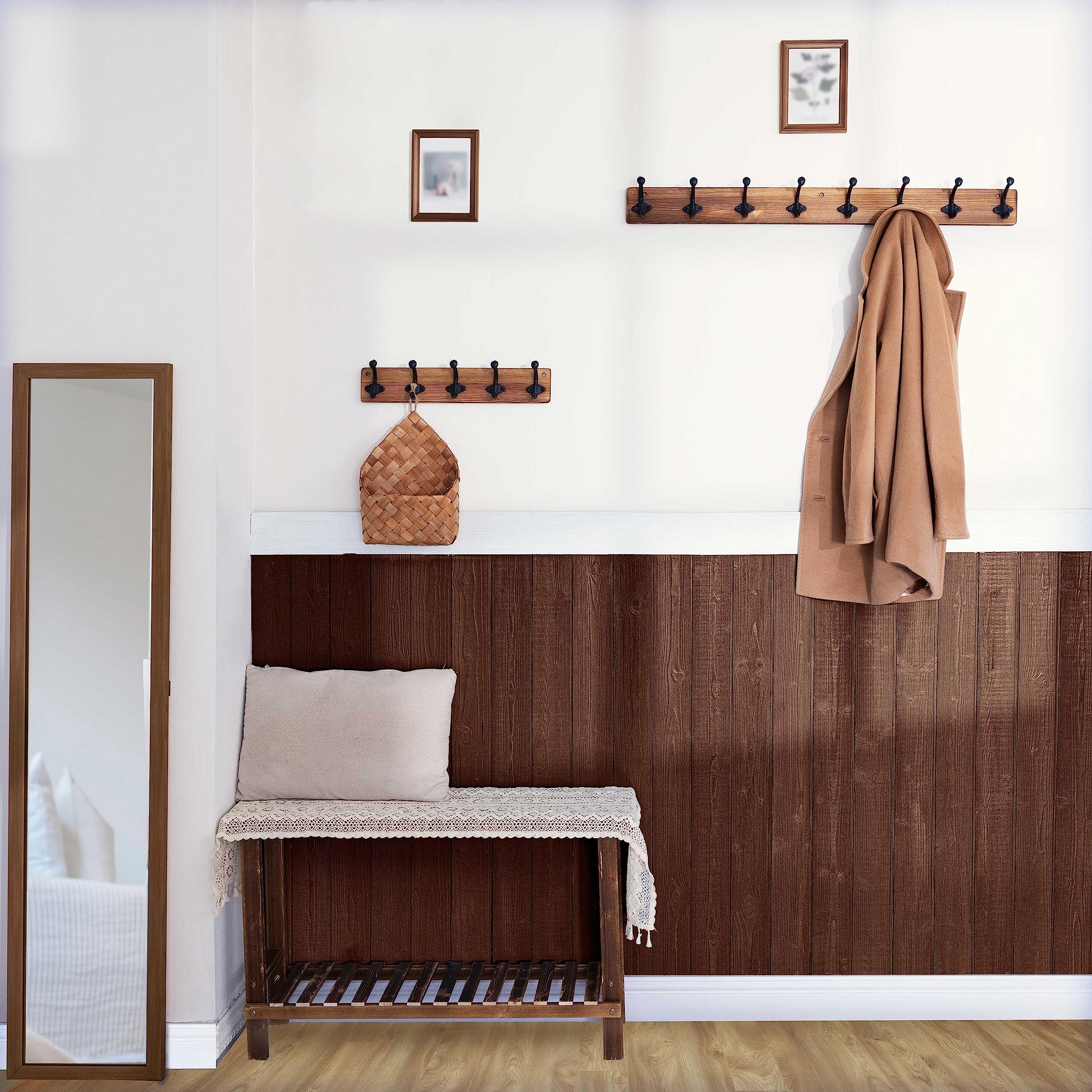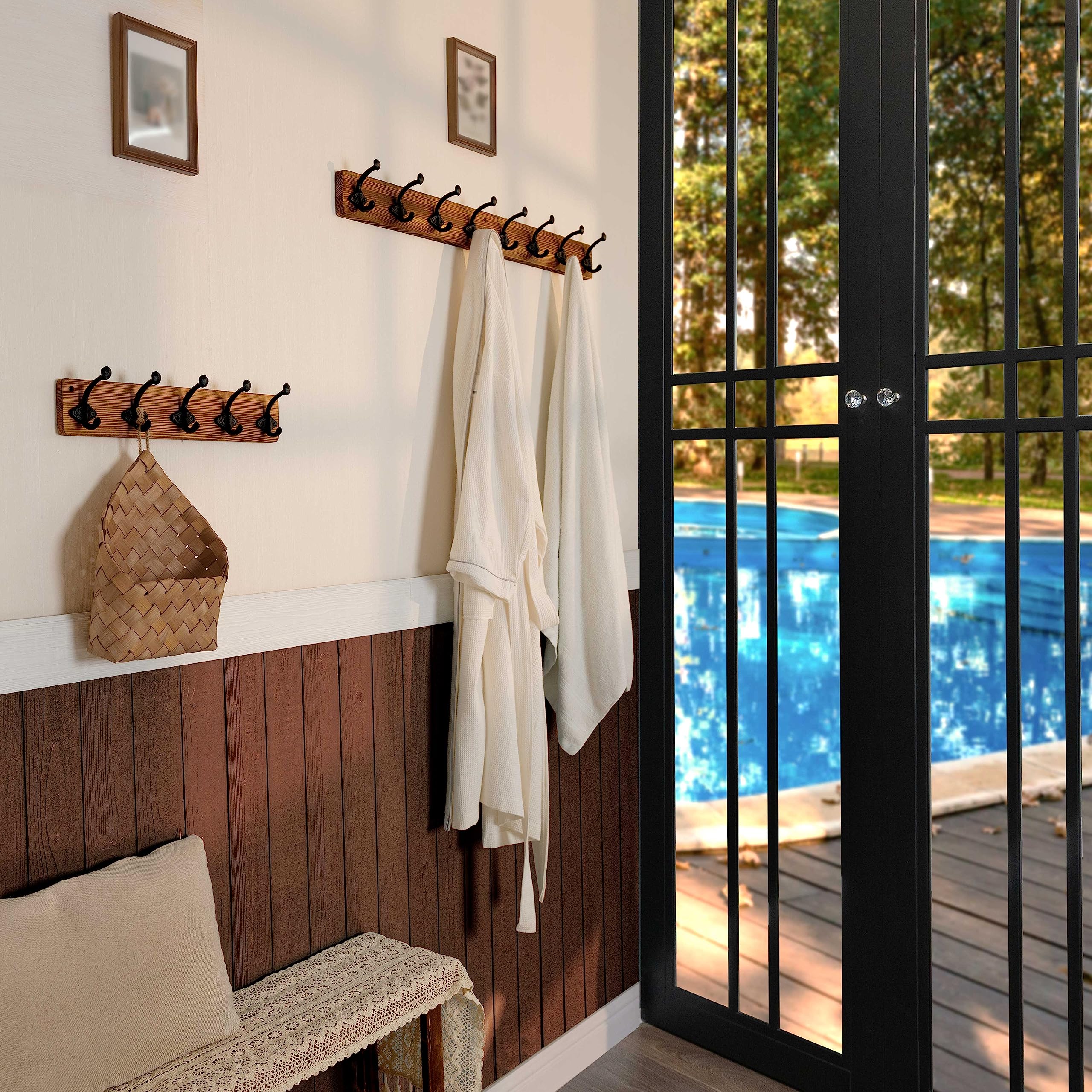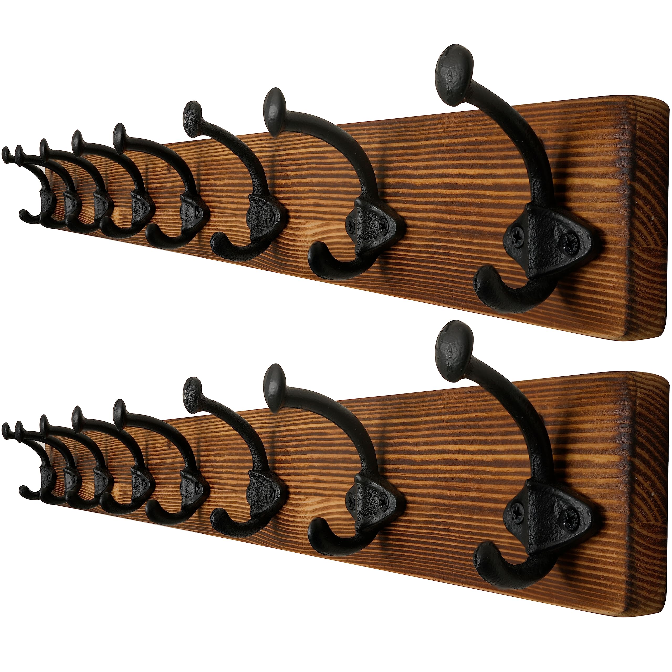 WEBI Garderobenleiste,Wandgarderobe Holz mit 8 Haken Gusseisen,Garderobenhaken Wand Garderobe Hakenleiste,Kleiderhaken Wand für Mäntel,Jacken,Braun,2 Stück