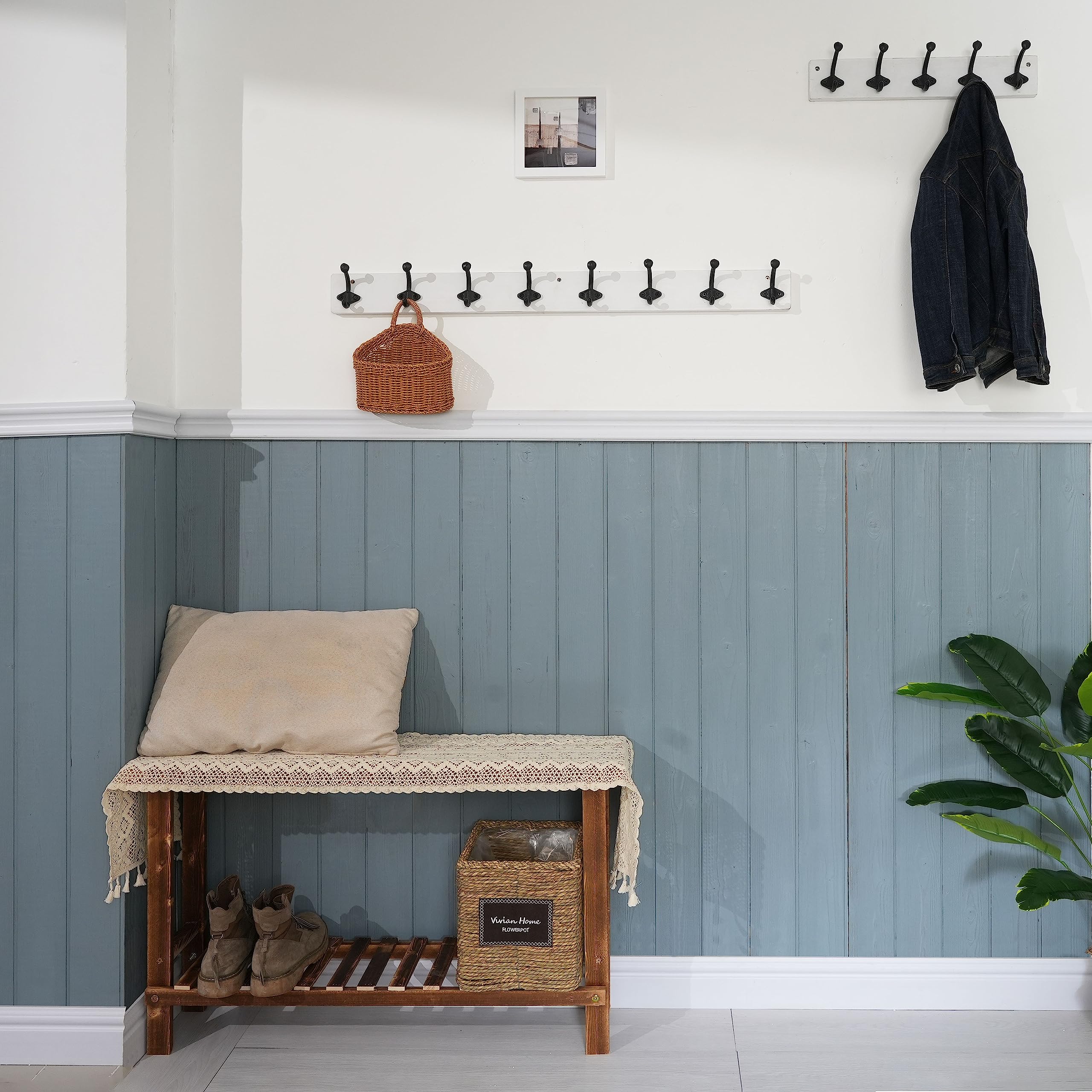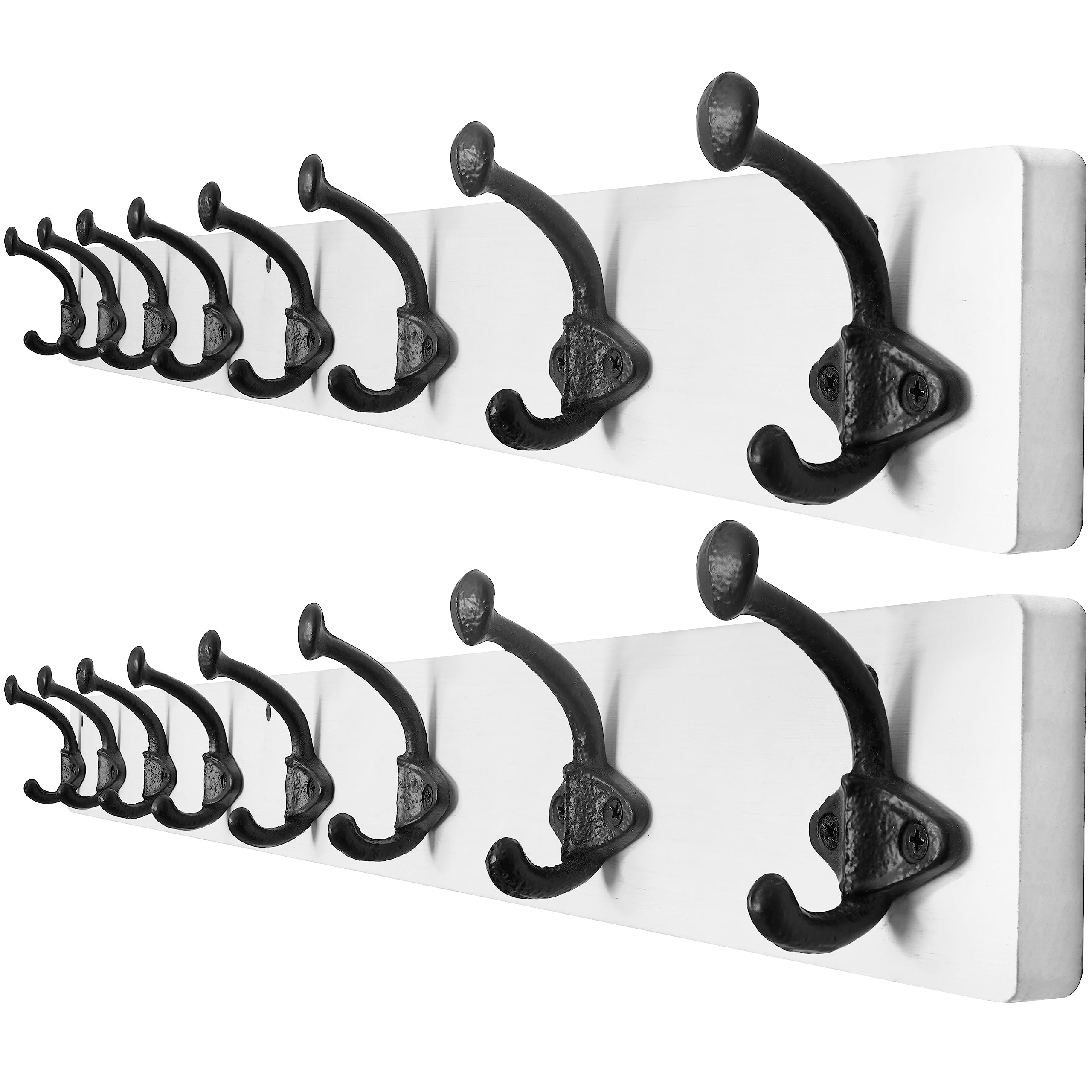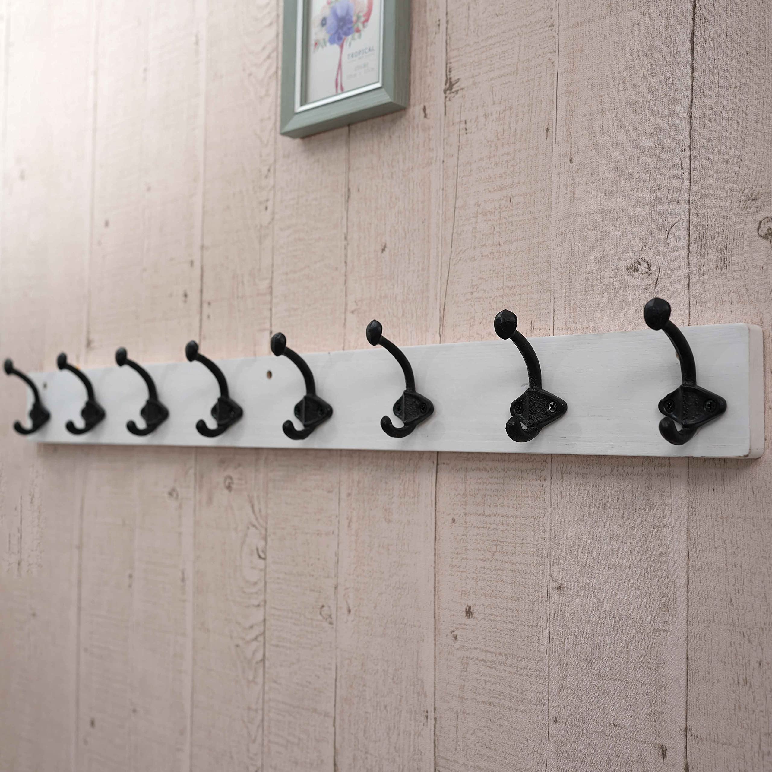 WEBI Garderobenleiste,Wandgarderobe Holz mit 8 Haken Gusseisen,Garderobenhaken Wand Garderobe Hakenleiste,Kleiderhaken Wand für Mäntel,Jacken,Weiss,2 Stück