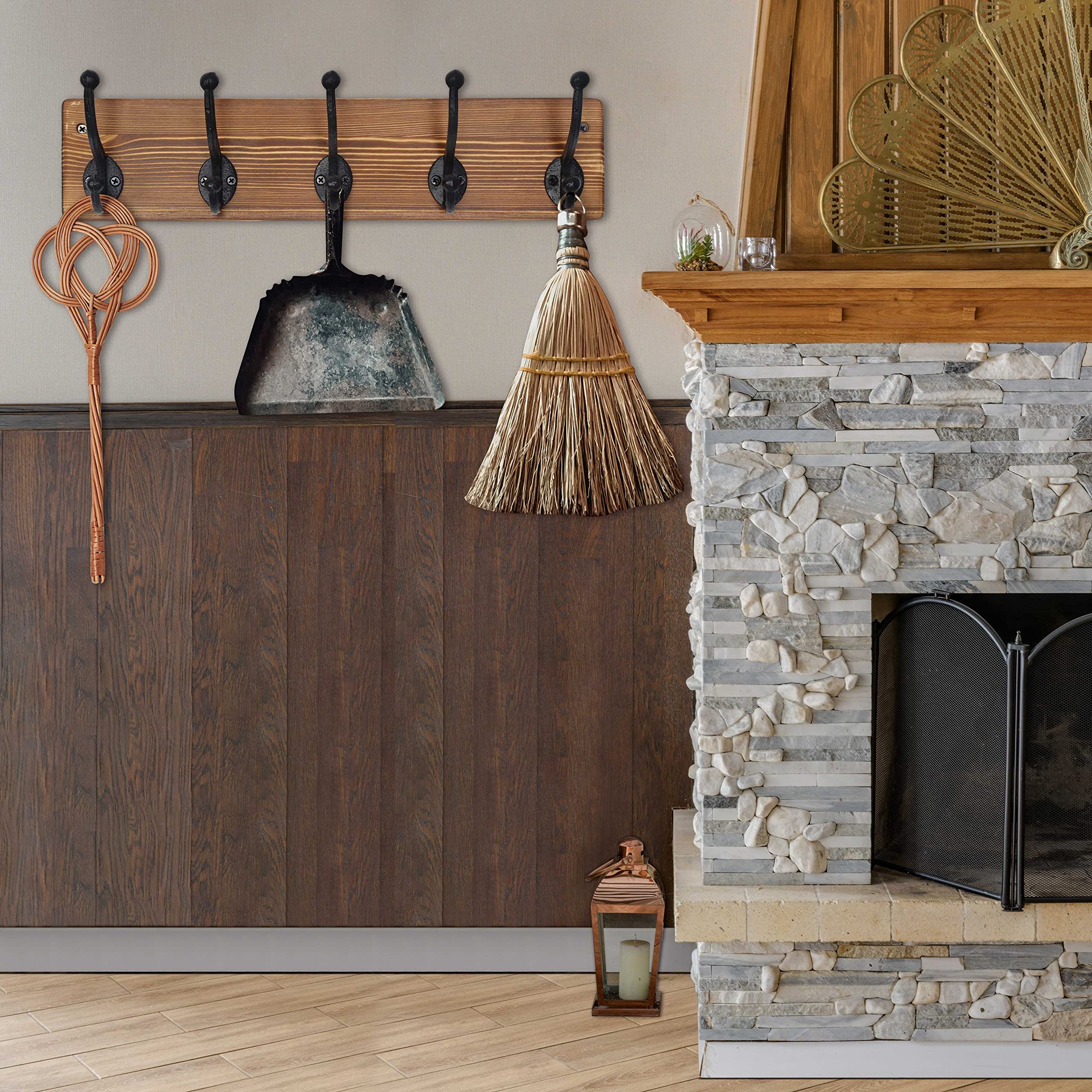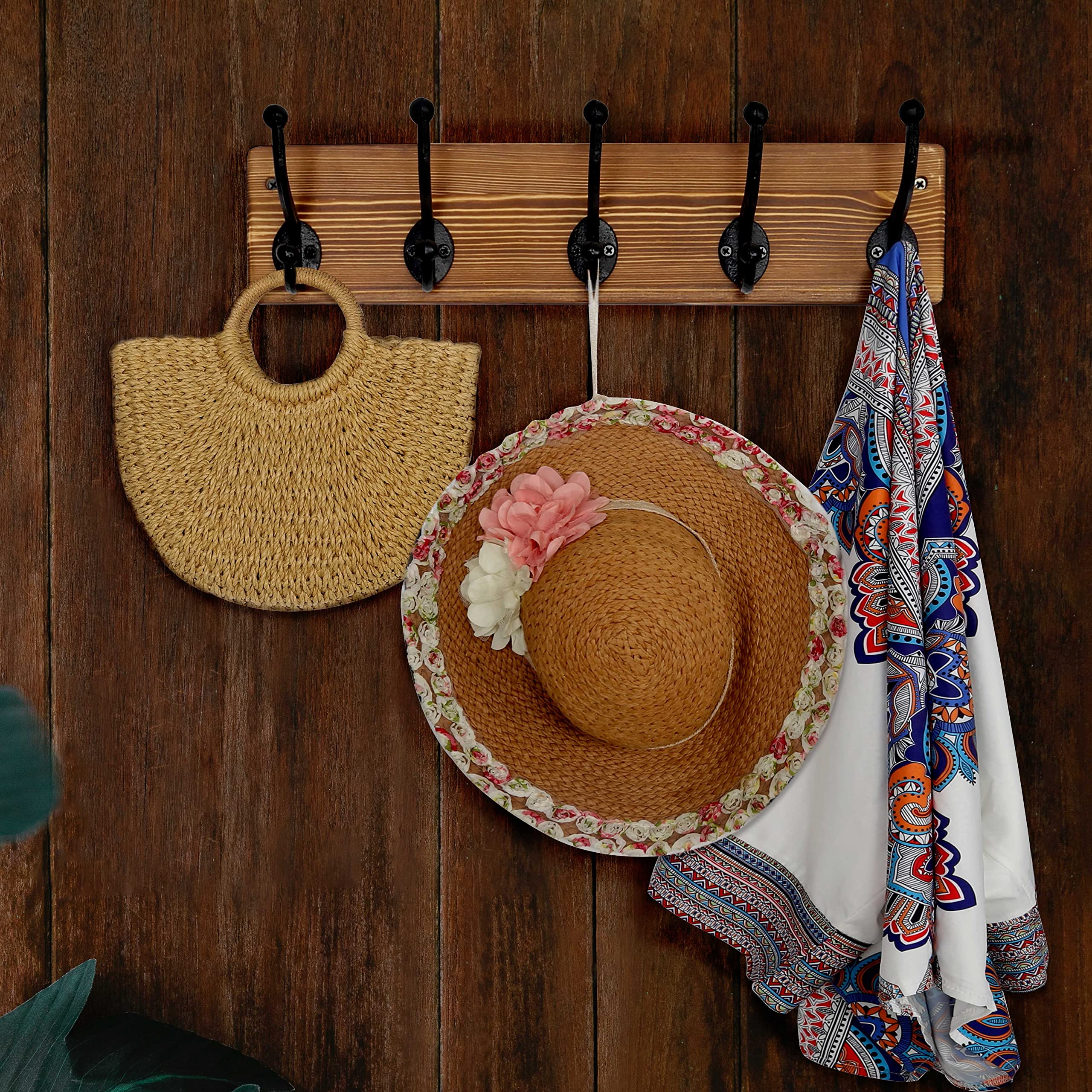 WEBI Garderobenleiste,Wandgarderobe mit 5 Haken Gusseisen,Garderobenhaken Wand,Kleiderhaken Wand,Garderobe Hakenleiste für Mäntel,Jacken,Braun