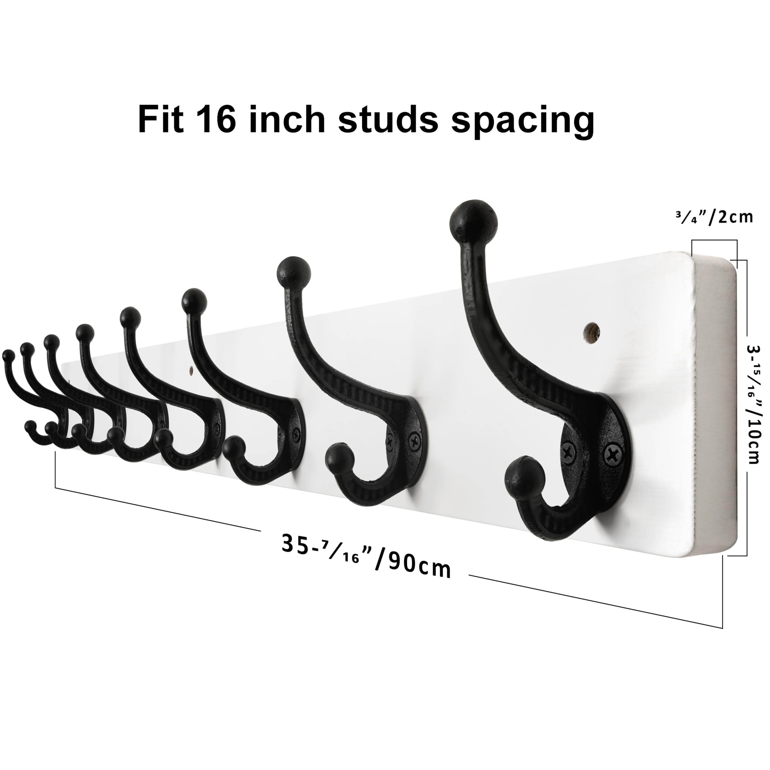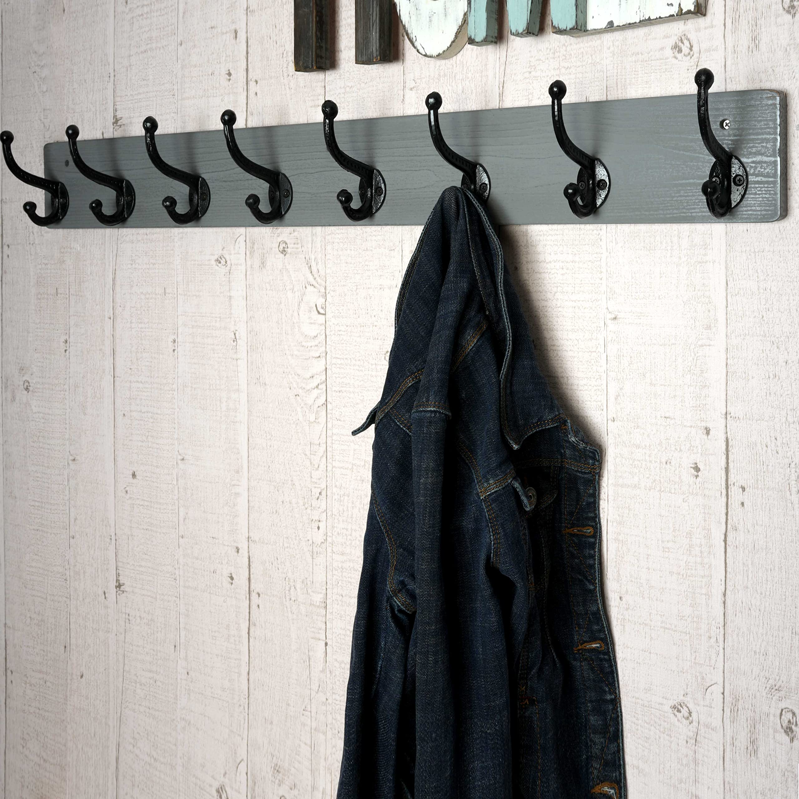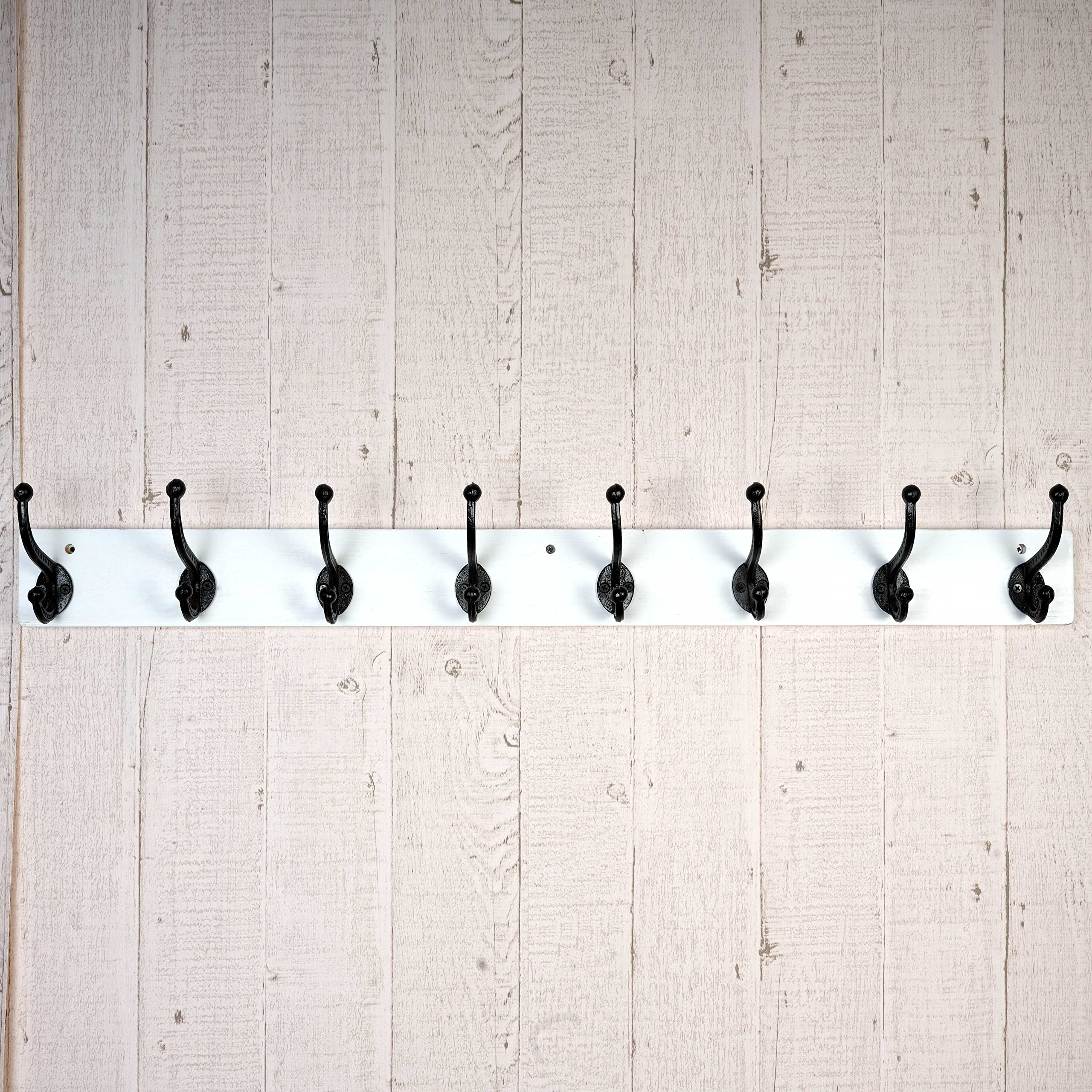 WEBI Garderobenleiste,Wandgarderobe mit 8 Haken Gusseisen,Garderobenhaken Wand,Kleiderhaken Wand Garderobe für Mäntel,Jacken,Weiss