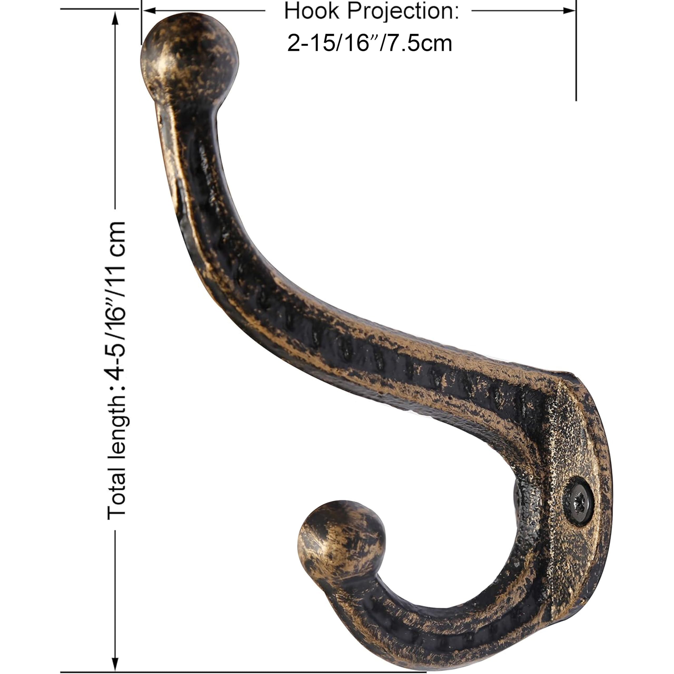 WEBI Kleiderhaken Wand Gusseisen,Garderobenhaken Vintage,Metall Wandhaken Rustikal,Mantelhaken,Huthaken,Doppelhaken für Mantel,Jacken,Hut,Schwarz/Golden,5 Stück