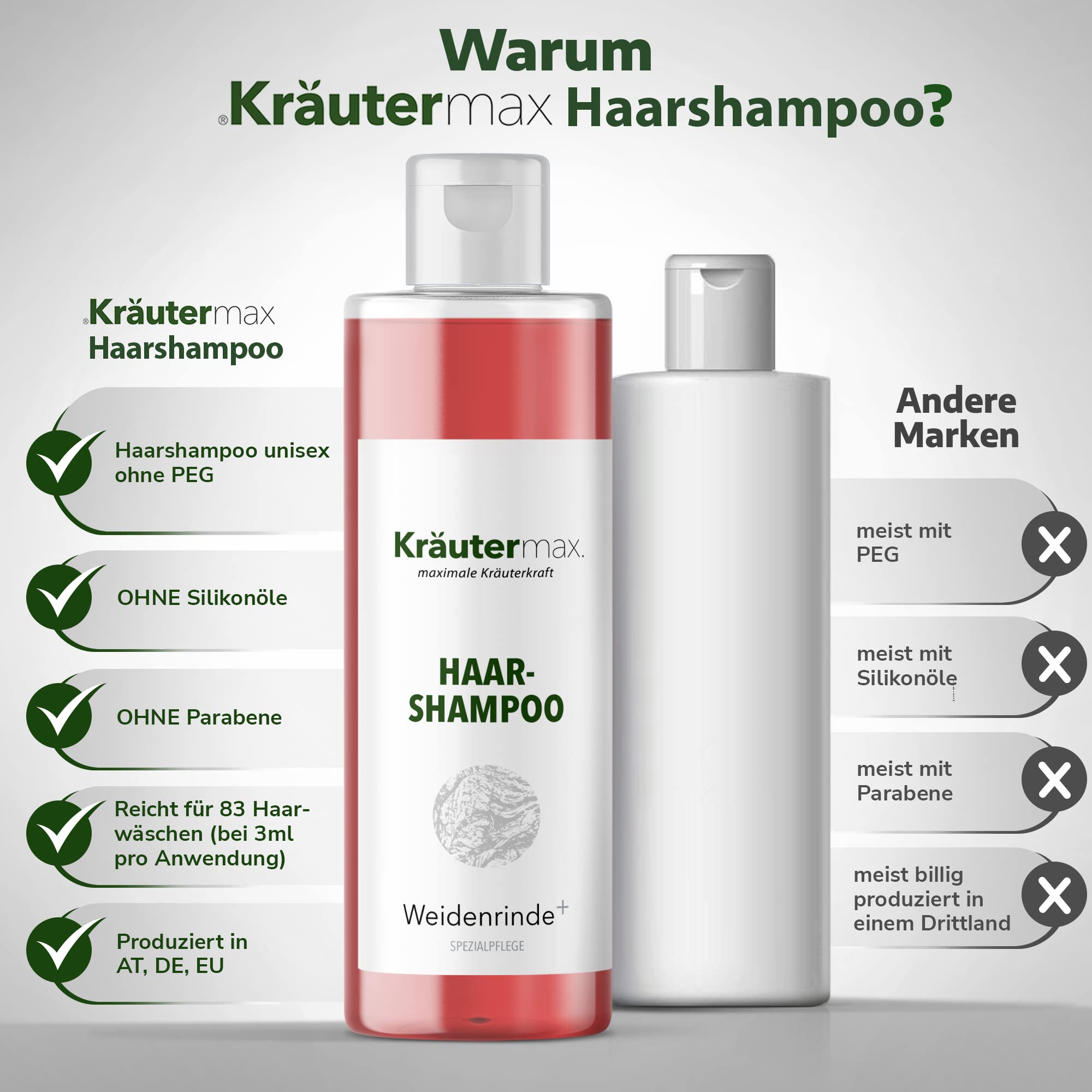 Weidenrinden Shampoo kaufen Haarshampoo Weidenrinden Plus. Weidenrinde Haarshampoo nach Original Kräutermax Rezeptur mit Extrakten aus Weidenrinde Tee , Meersalz Baden, Eichenrinde und Rosmarin . Waschaktive Weidenrindenextrakt Substanzen natürlichen Ursprungs pflegen und reinigen das Haar ohne es zu schädigen. Dieses Weidenrinde Bad Shampoo ist eine schonende Reinigung und wohltuende Pflege für Ihre Kopfhaut und Haare. Weidenrinde Creme ist für tägliche Haarwäsche geeignet.