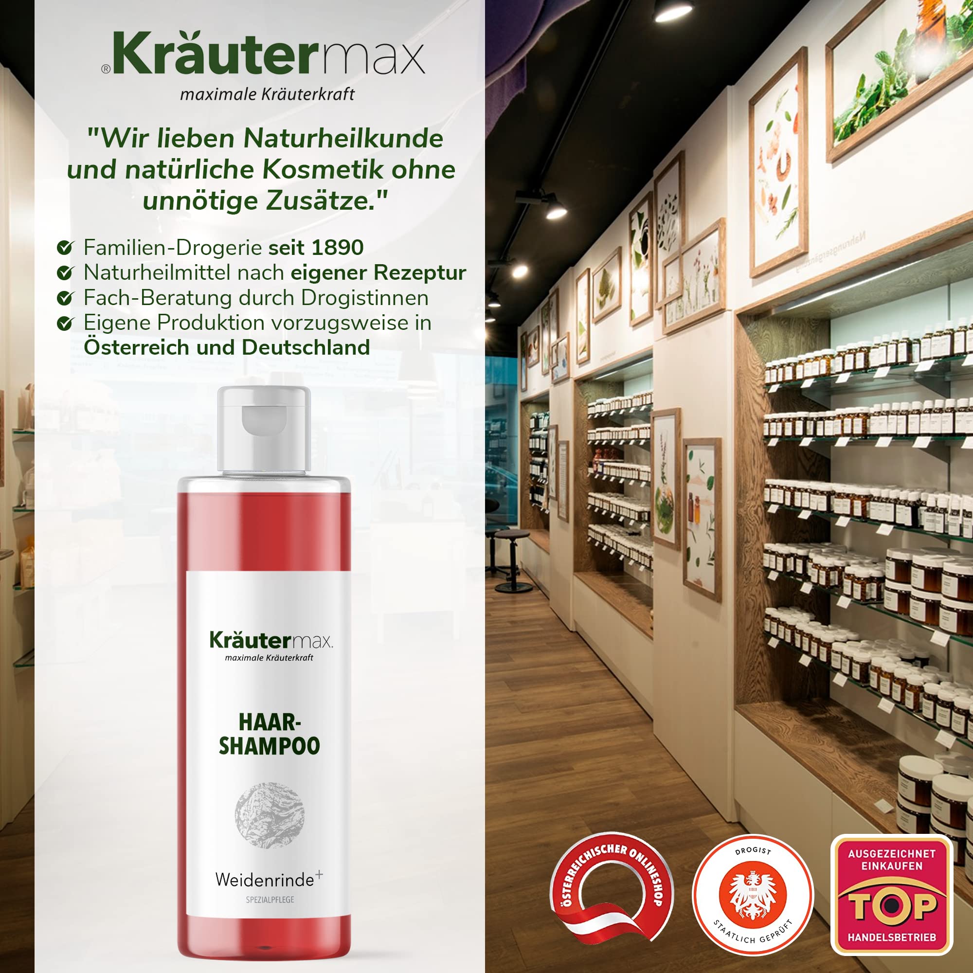MIT natürlichen Weidenrindenpulver Pflanzenextrakten Meersalz Haarshampoo OHNE Paraffine und Vaseline auf Erdölbasis Eichenrinde Bad OHNE synthetische Farbstoffe Rosmarin Shampoo OHNE Aluminiumsalze Meersalz Haarseife OHNE Parabene Eichenrinde Creme OHNE Silikonöle Rosmarin Shampoo OHNE Lanolin Meersalz Shampoo OHNE PEG (Polyethylenglykol)Premiumqualität von Eichenrinde Flüssig mit strengsten QualitätskontrollenGesetzliche Anforderungen von Rosmarin Haarshampoo werden erfüllt Meersalz Seife produziert in Österreich oder Deutschland Eichenrinde Gemahlen in Kleinserien erzeugt
