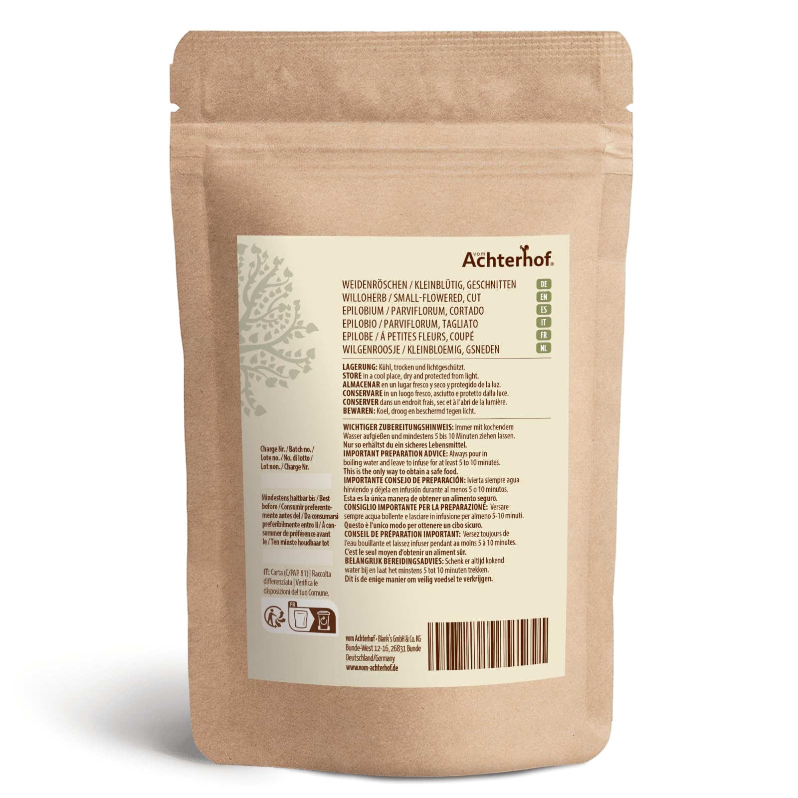 Weidenröschen kleinblütig 1000g | Weidenröschen Tee getrocknet und geschnitten | angenehm mildes und leicht blumiges Aroma | hochwertiges Kräuterprodukt erster Güte | vom Achterhof