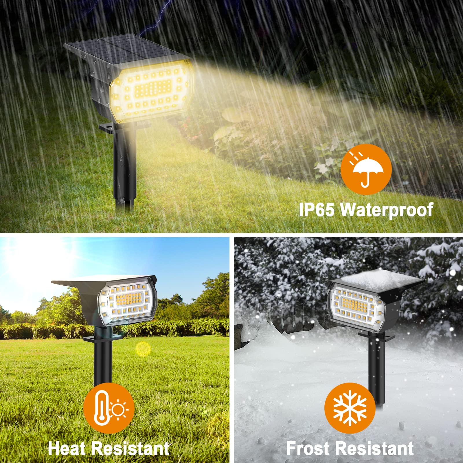 - 【57 LED Superhell Solarstrahler】: Ausgestattet mit 57 LEDs, können Solarlampen max 800 Lumen Lichtleistung erzeugen, im Vergleich zu anderen Solarleuchten auf dem Markt, ist unsere Arbeitszeit länger, die Helligkeit ist stärker, und es ist haltbarer.