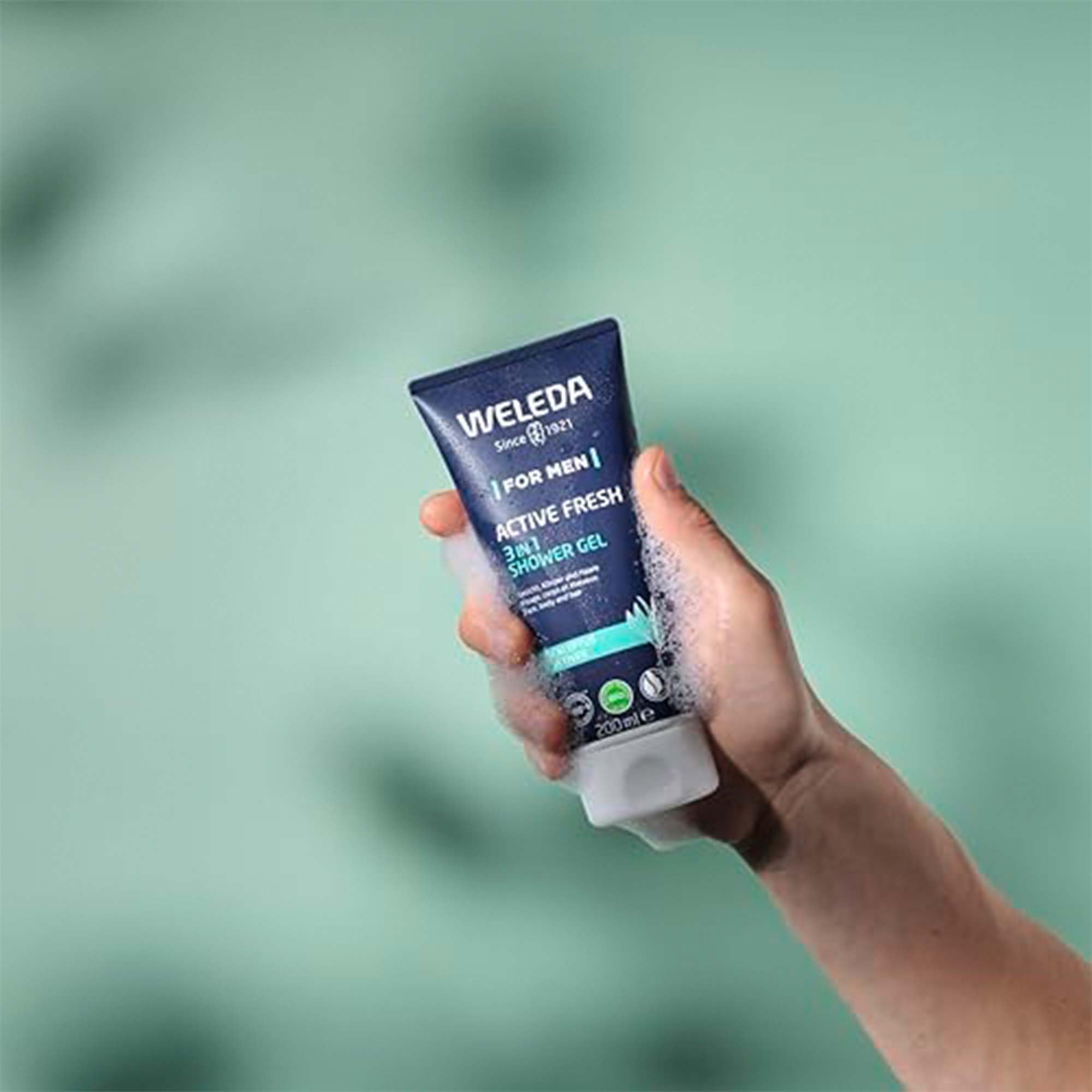 WELEDA Bio For Men 3in1 Duschgel & Shampoo ACTIVE FRESH vegan - Naturkosmetik Männer Duschseife & Haarpflege mit Eukalyptus & Vetiver Duft. Natürliche Dusche zur Reinigung von Haut & Haar (1x 200ml)