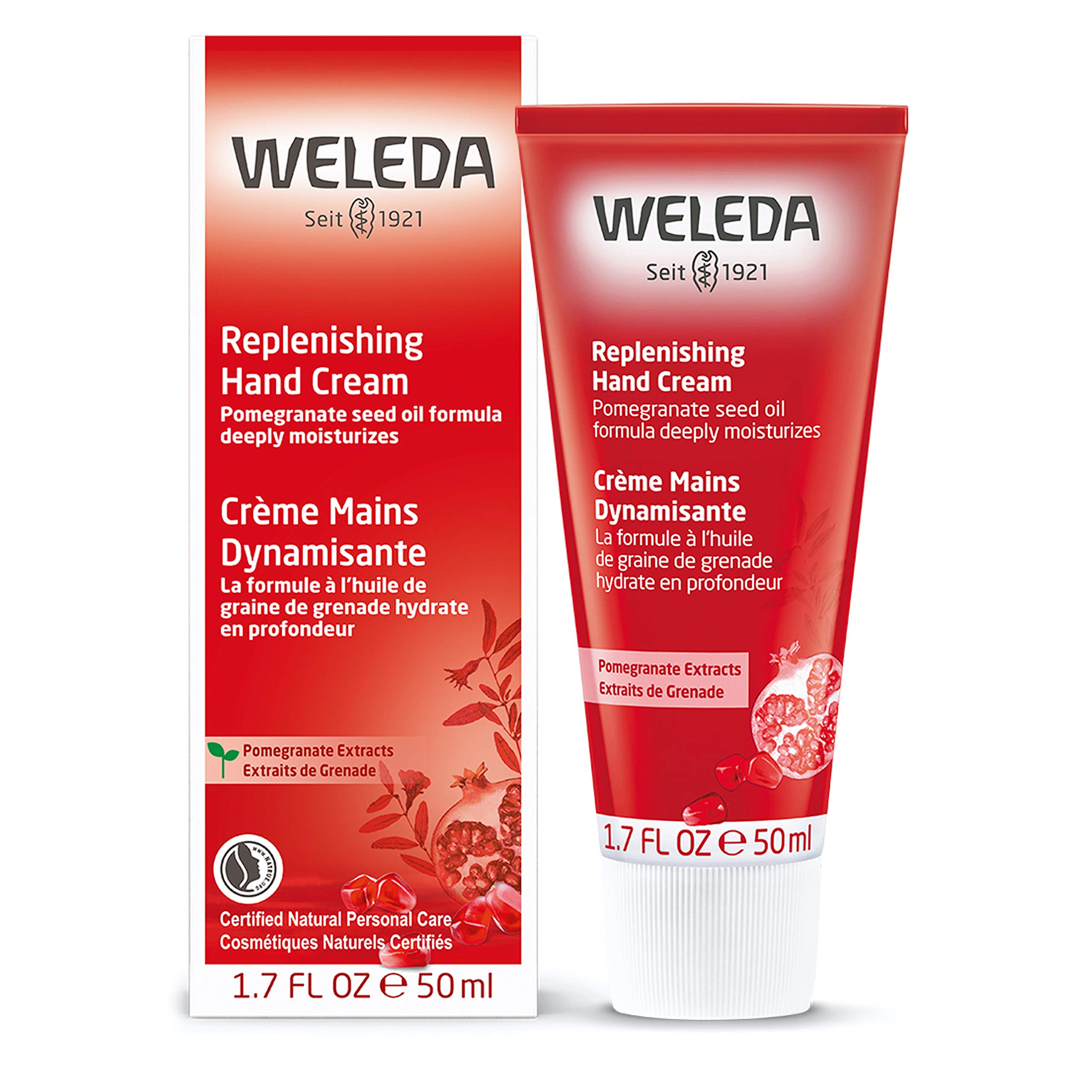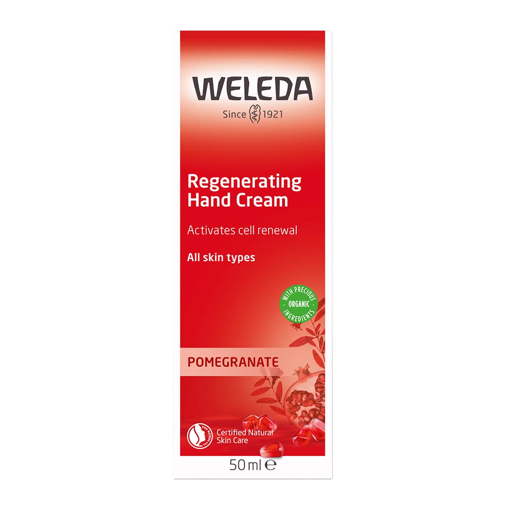 WELEDA Bio Intensiv Handcreme Granatapfel - Naturkosmetik Handpflege Creme beugt Pigmentflecken vor, Nachhaltige Feuchtigkeitscreme mit Sheabutter & Orange-Vanille Duft für trockene Hände (1x 50ml)