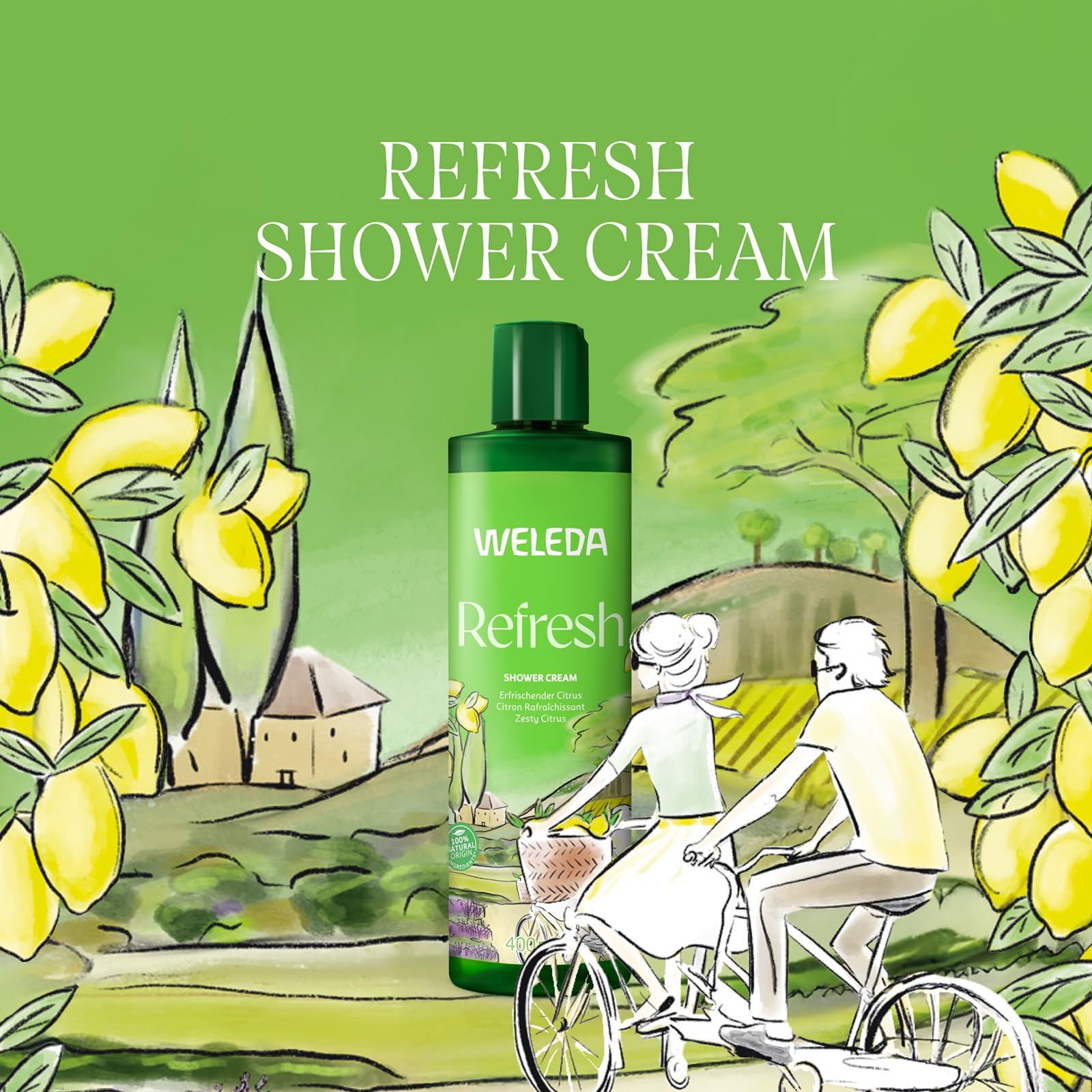 WELEDA Bio Refresh XL Duschgel 400 ml – Vegan, Mit Zitrone & Orange Duft, Natürliche Hautpflege für Gesicht & Körper