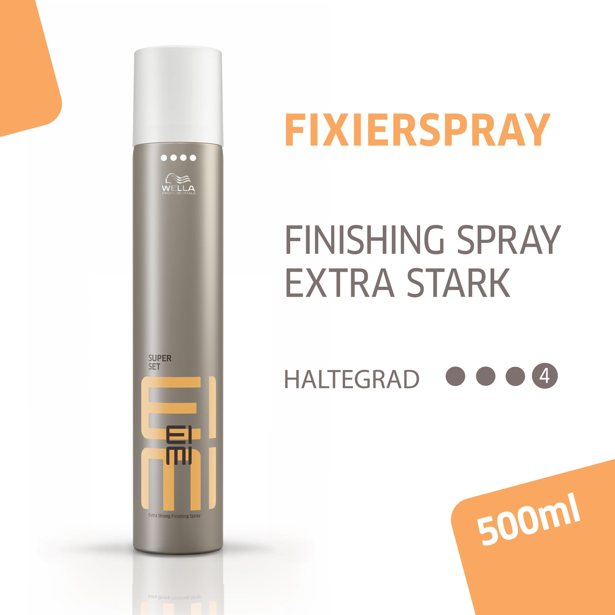 Wella EIMI Haarlack für absolute Kontrolle über jeden vollendeten LookMit den Stylingprodukten von Wella Professionals EIMI lange und kurze Frisuren mit Haarsprays fixieren und modellieren – Probiere es aus!EIMI Super Set verleiht fertigen Frisuren starken Halt. Die Formel des superstarken Styling Sprays sorgt für volle Kontrolle. Dabei wird das Haar auch vor den Auswirkungen von UV-Strahlung, Feuchtigkeit und Hitze geschützt und zur Vermeidung von Frizz beigetragen. Der einzigartige EIMI Duft verleiht dem Haar Styling einen luxuriösen Glamour.SAY STYLE, SPEAK EIMIExtra starkes Finishing-SprayMaximaler Halt und volle KontrolleHitze-, Feuchtigkeits- und Sonnenschutz für die HaareHaltegrad 4 versiegelt den Style