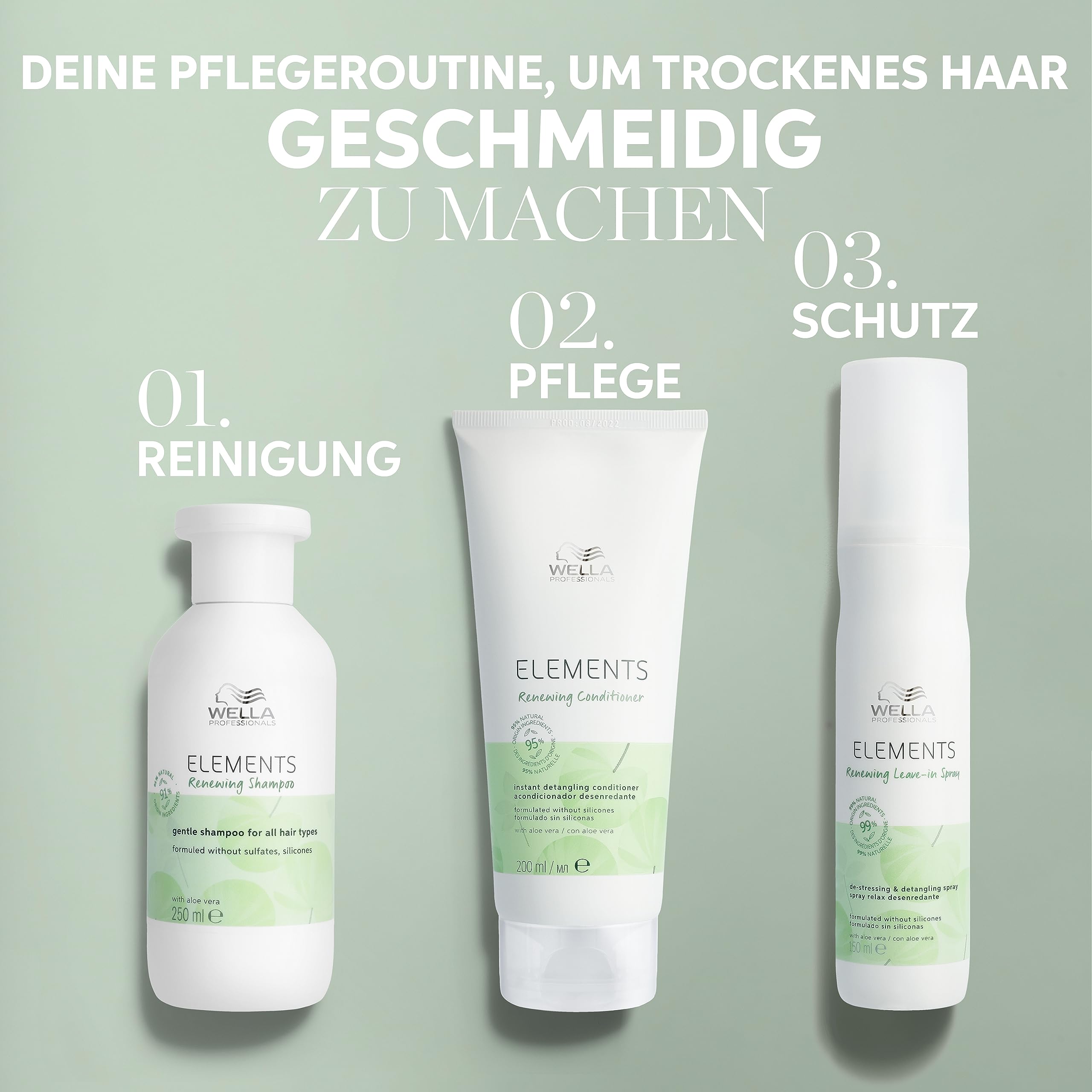 Wella Professionals Elements – natürliche Haarpflege für trockenes, strapaziertes Haar & empfindliche Kopfhaut – Conditioner, Maske & Leave-in Spray mit Antioxidantien & Olivenessenz