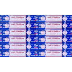 Nag Champa Grosspackung, blau, 12 Päckchen mit je 15 g Inhalt, gesamt 180 g.