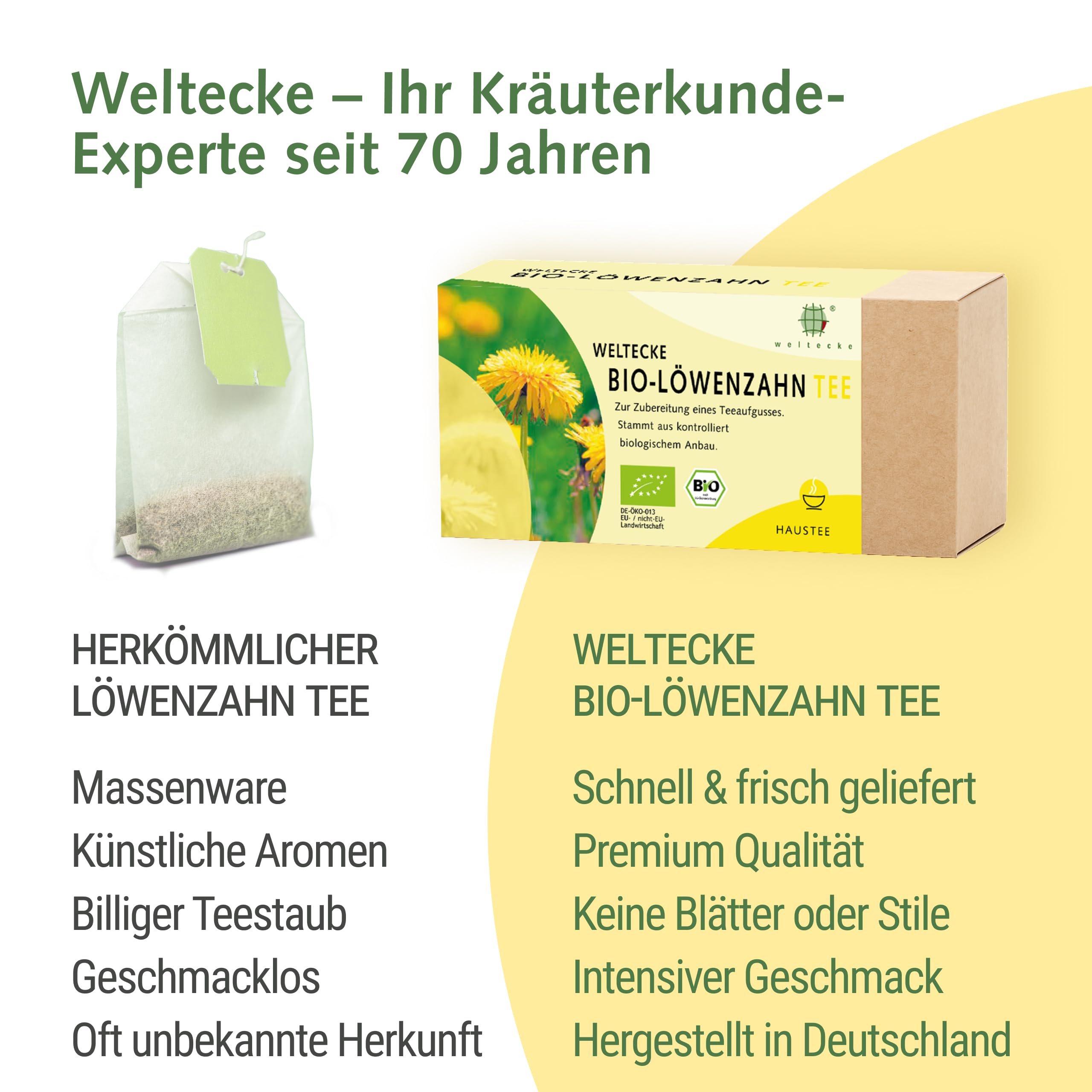 WELTECKE Bio Löwenzahntee - 3 x 25 Filterbeutel - 100% Reiner Löwenzahn - Kräutertee Ohne Zusatzstoffe - Natürliche Teemischung Aus Löwenzahnwurzel & Löwenzahnkraut - Tee In Teebeuteln