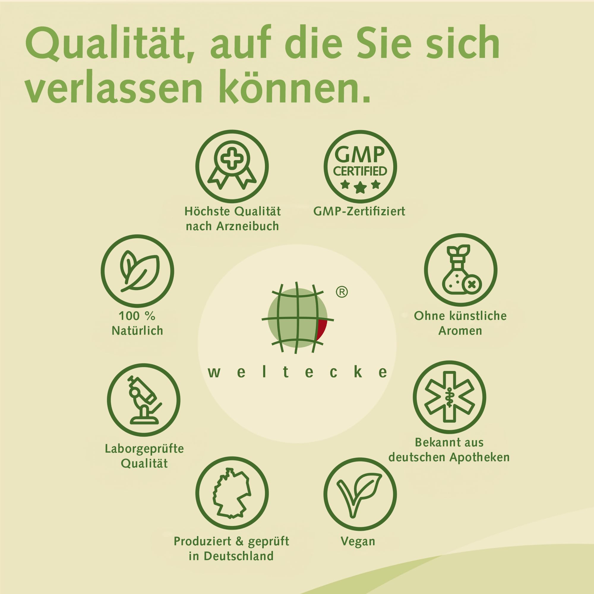 • UNSERE PHILOSOPHIE: „Die Natur ist die Apotheke der Welt” - Nach dieser Philosophie gründete Alexander Weltecke sein Unternehmen vor mehr als 70 Jahren. Bis heute spiegelt sich seine Vision in jedem einzelnen unserer hochwertigen Produkte wider.