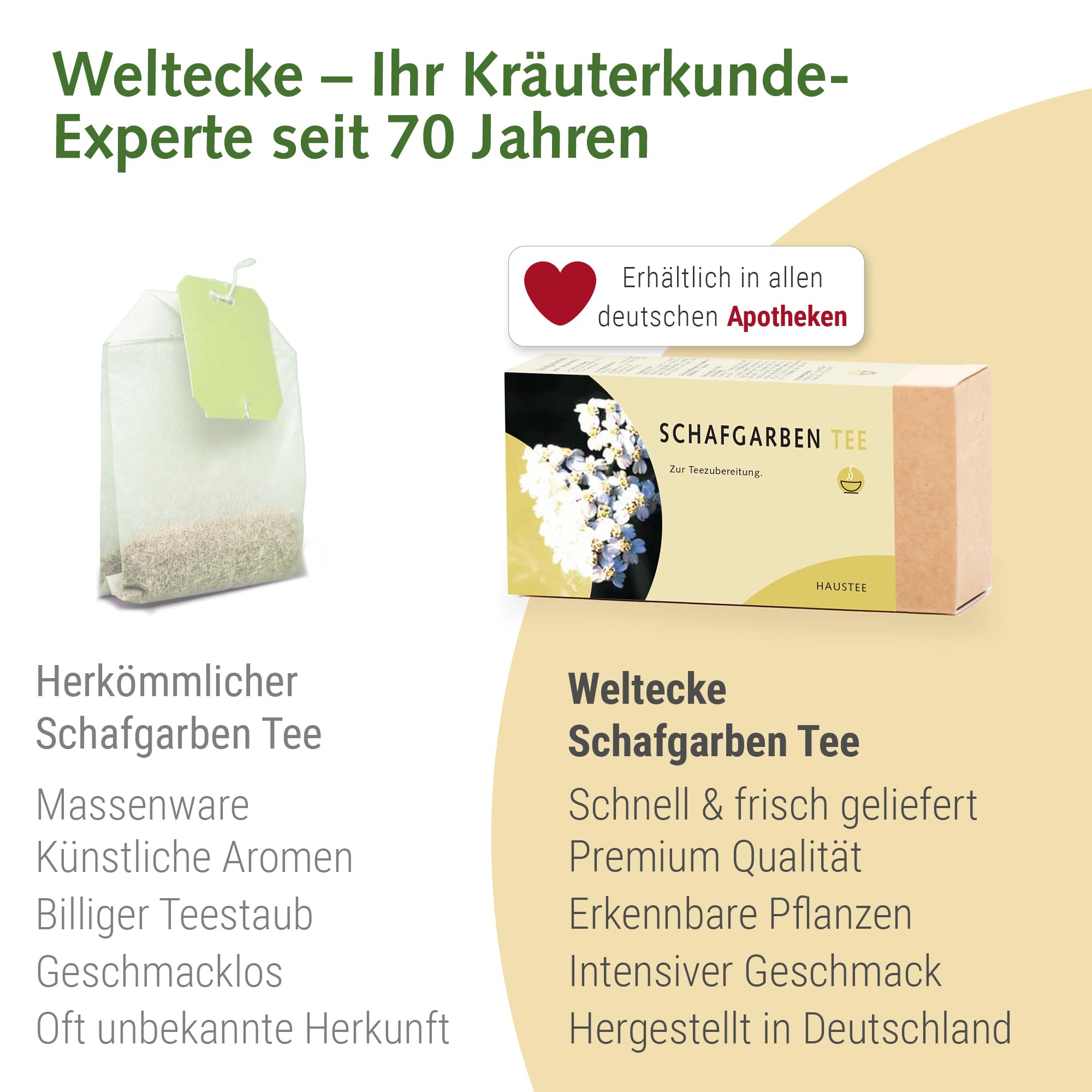 Weltecke Schafgarbe-Tee 3x25 Teebeutel in Arzneibuch-Qualität | Schafgarbenkraut Kontrolliert & | Aromatisch-Würziger Kräuter-Tee | Beliebt Bei Frauen