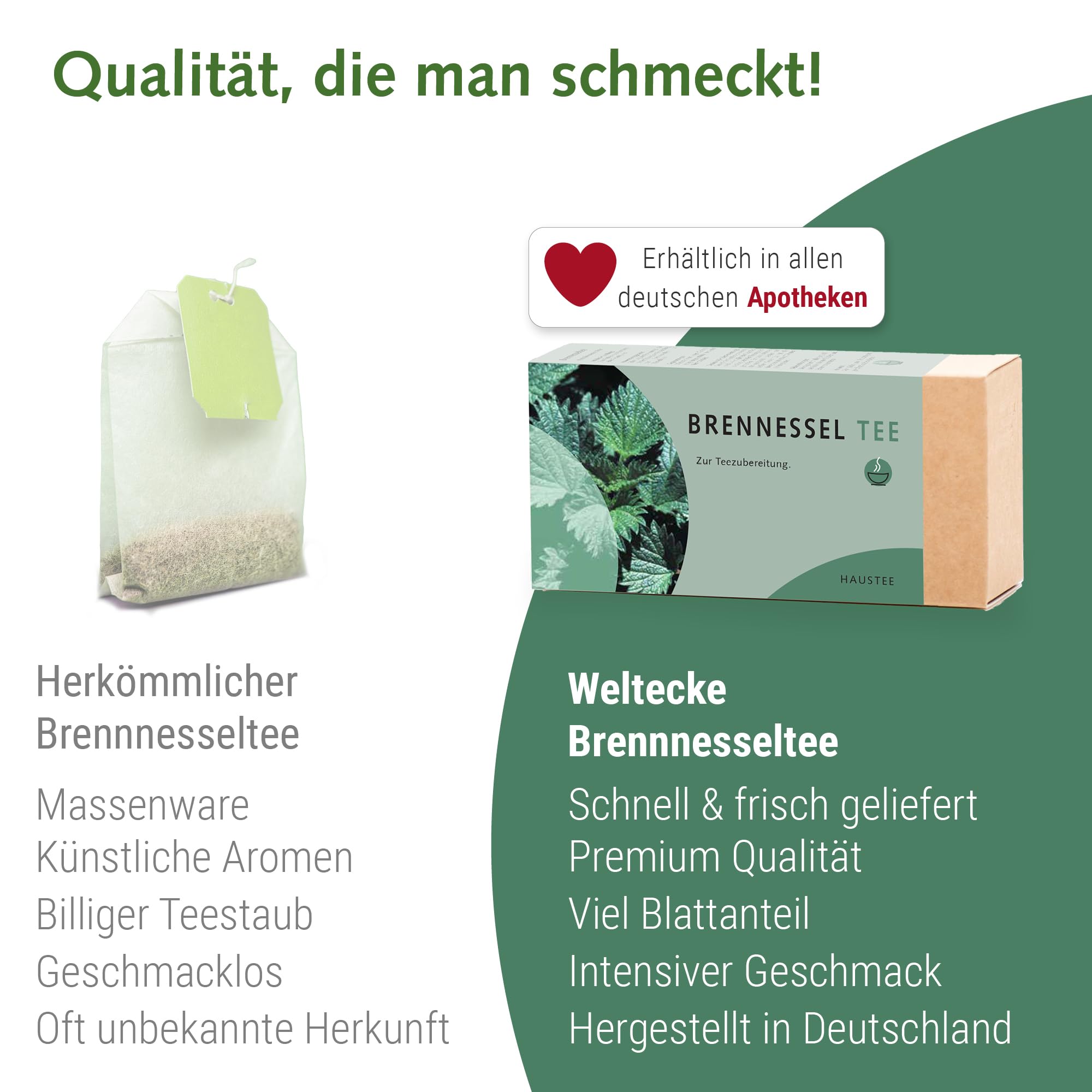 Weltecke Brennnessel-Tee 3x25 Teebeutel | Arzneibuch-Qualität in Deutschland hergestellt & kontrolliert | Frisch-würziges Aroma | Brennnessel-Blätter schonend getrocknet | Kräuter-Tee