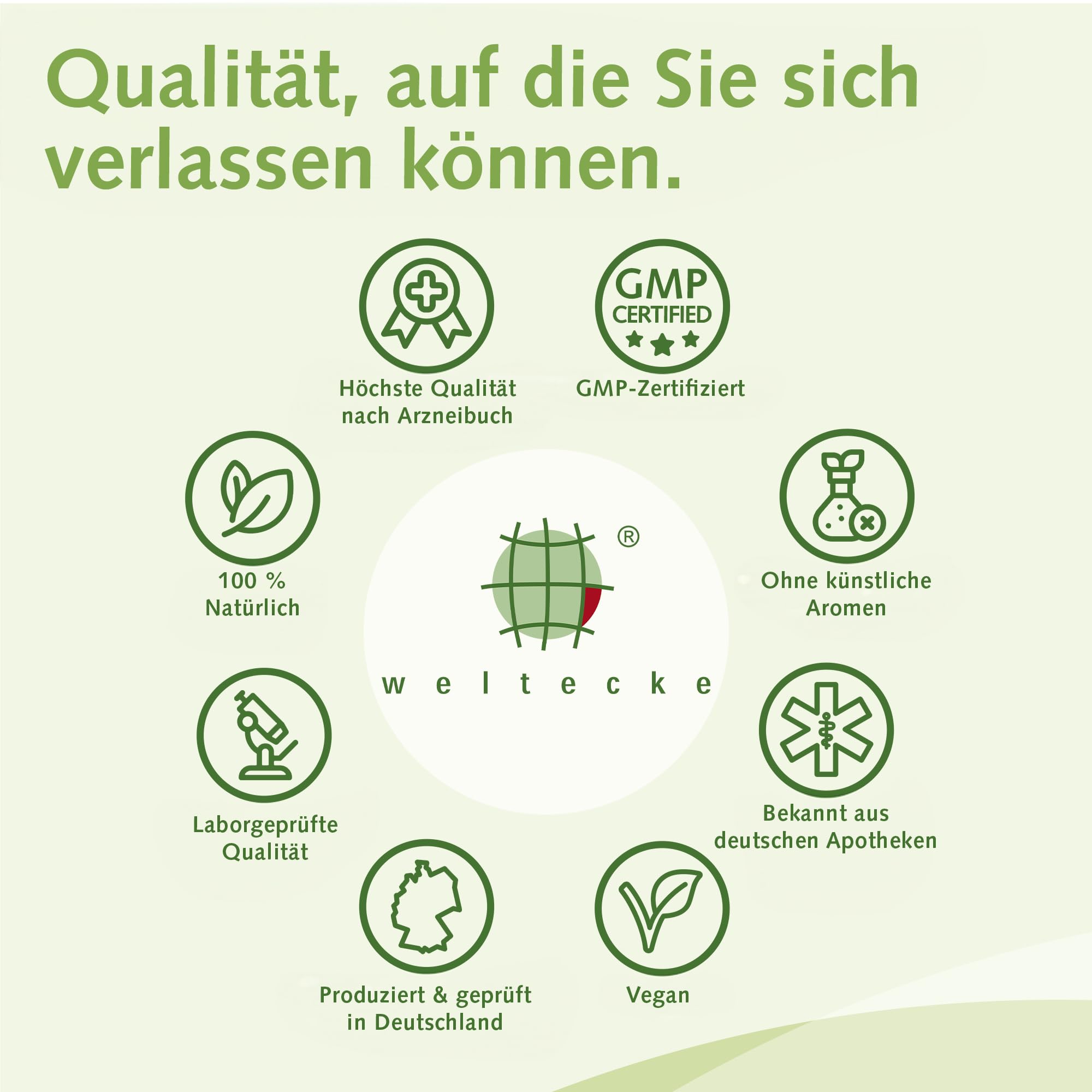 - UNSERE PHILOSOPHIE: Die Natur ist die grosse Apotheke der Welt“ – nach dieser Philosophie gründete Alexander Weltecke vor mehr als 70 Jahren sein Unternehmen. Bis heute spiegelt sich seine Vision in jedem einzelnen unserer hochwertigen Produkte wider.