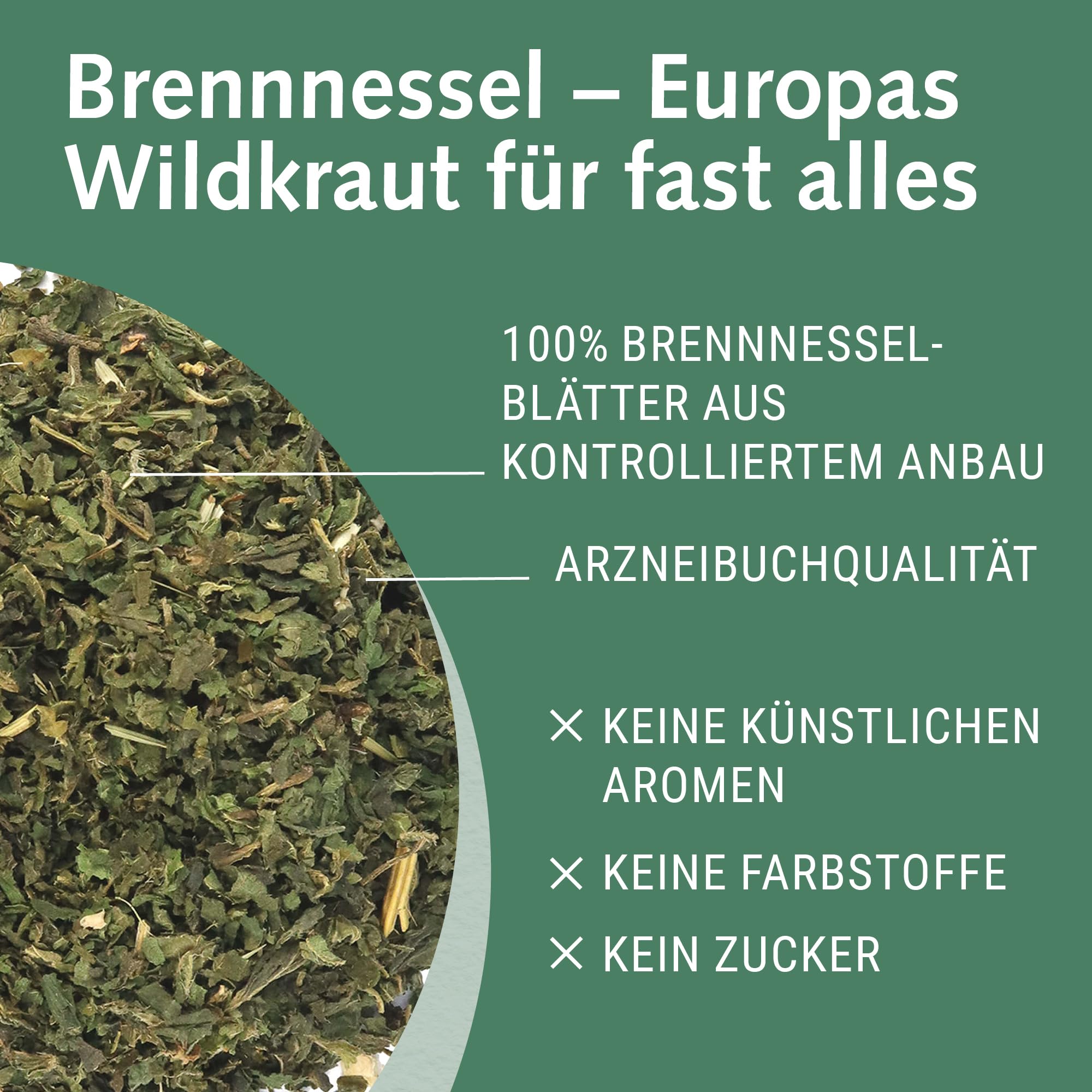 - MILDER, WÜRZIGER GESCHMACK: Unser Tee ist nicht auf Lager, sondern wird von uns frisch hergestellt. Das schmeckt man! Der mild-würzige Geschmack von Brennnesseltee erfrischt Körper und Geist.