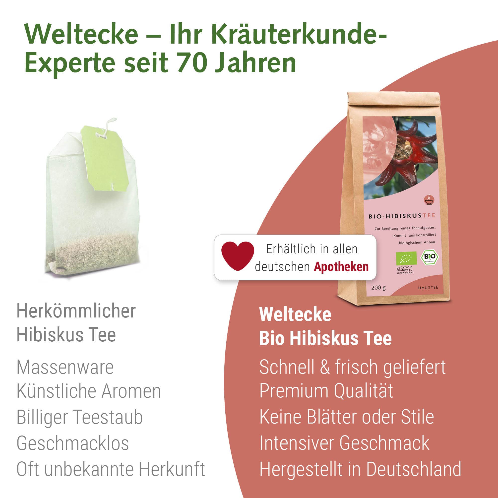 Weltecke Bio-Hibiskus-Tee lose 200 g | In Deutschland kontrolliert & hergestellt | Getrocknete Hibiskus-Blüten frisch abgefüllt | Fruchtig-aromatischer Entspannungstee | Hibiscus Tea