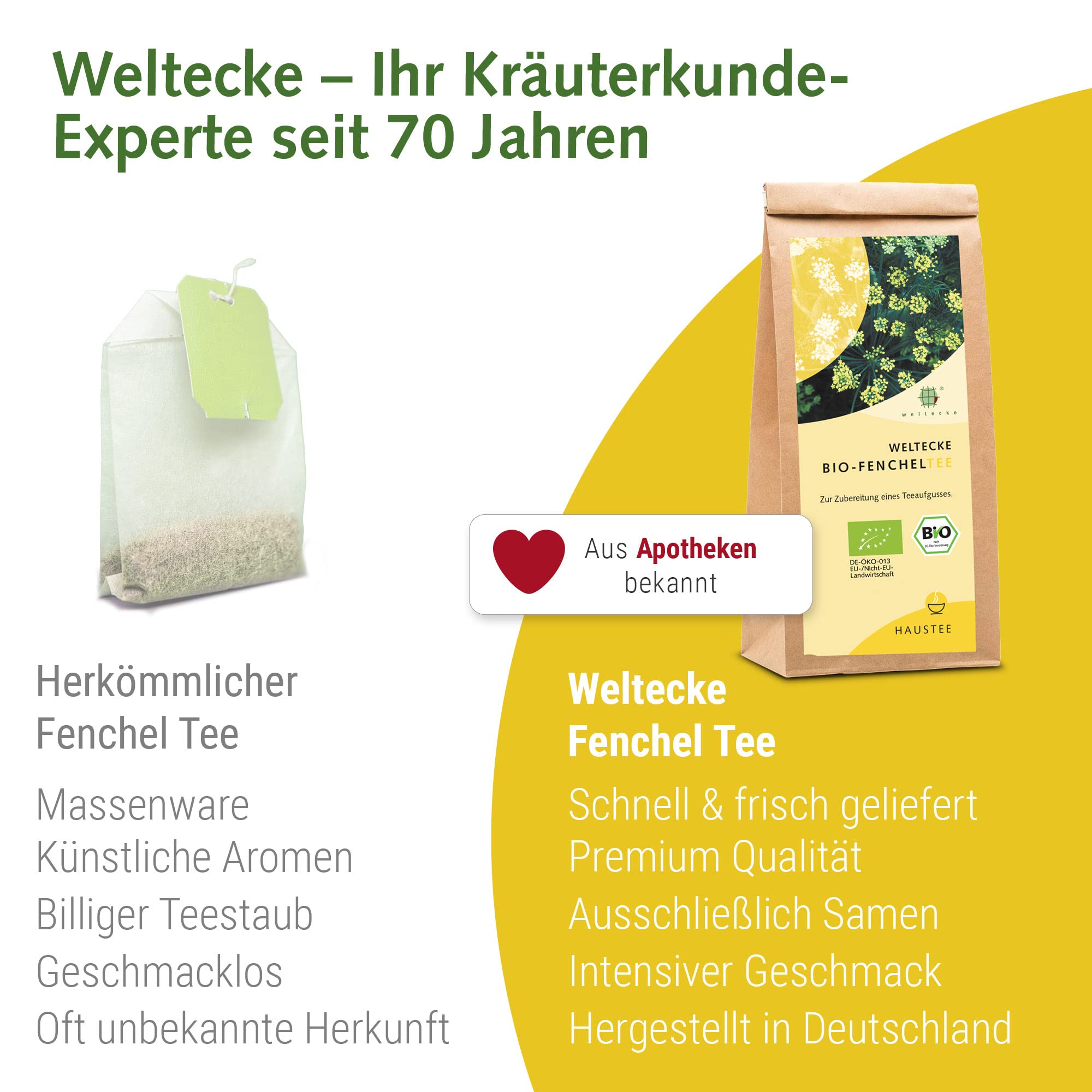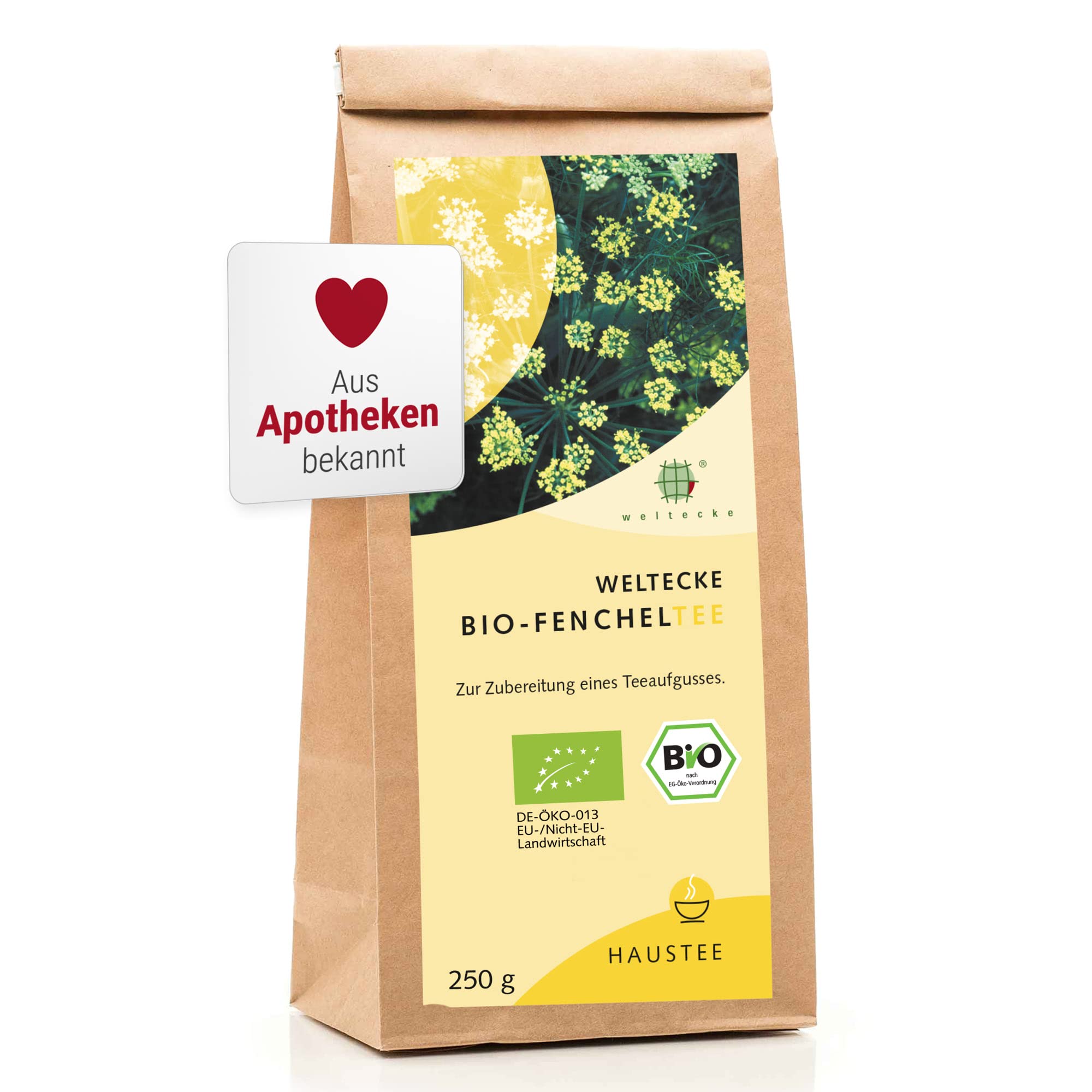 Weltecke Bio-Fenchelsamen getrocknet & lose 250 g | Bio-Fenchel-Tee in Deutschland kontrolliert & kontrolliert in Deutschland | Ideal als Baby-Tee ab der 1. Woche