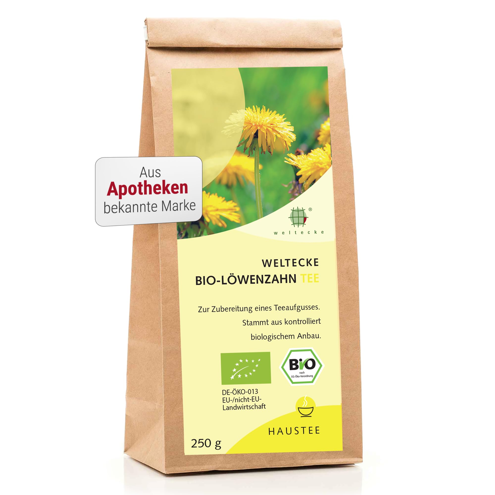 Weltecke Bio-Löwenzahn-Tee lose 250 g | Löwenzahnwurzel & Blätter getrocknet, geschnitten | In Deutschland hergestellt | Würzig-herber Kräuter-Tee I Sanft bittere Note I Organic Dandelion Tea