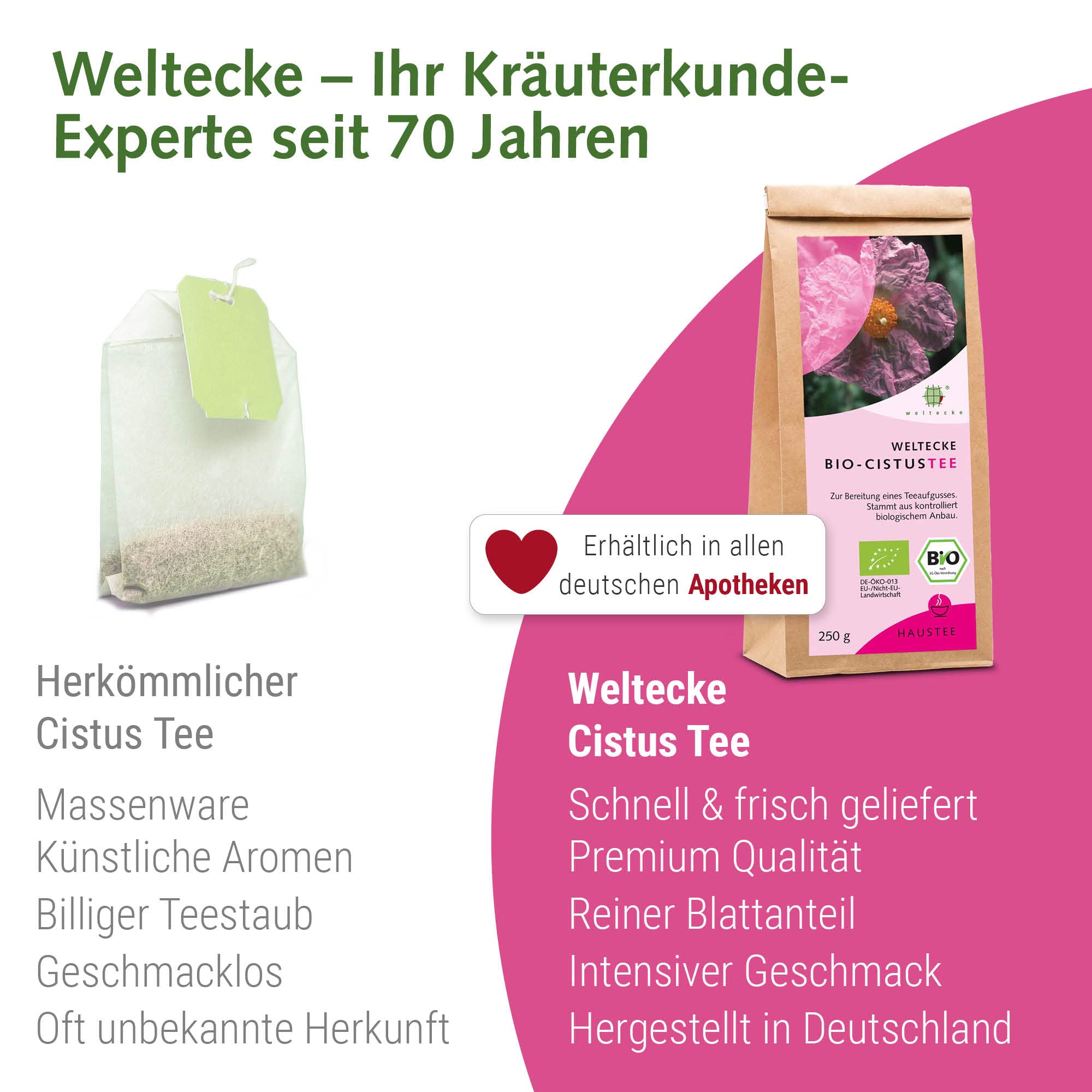 - UNSERE PHILOSOPHIE: Die Natur ist die grosse Apotheke der Welt“ – nach dieser Philosophie gründete Alexander Weltecke vor mehr als 70 Jahren sein Unternehmen. Bis heute spiegelt sich seine Vision in jedem einzelnen unserer hochwertigen Produkte wider.