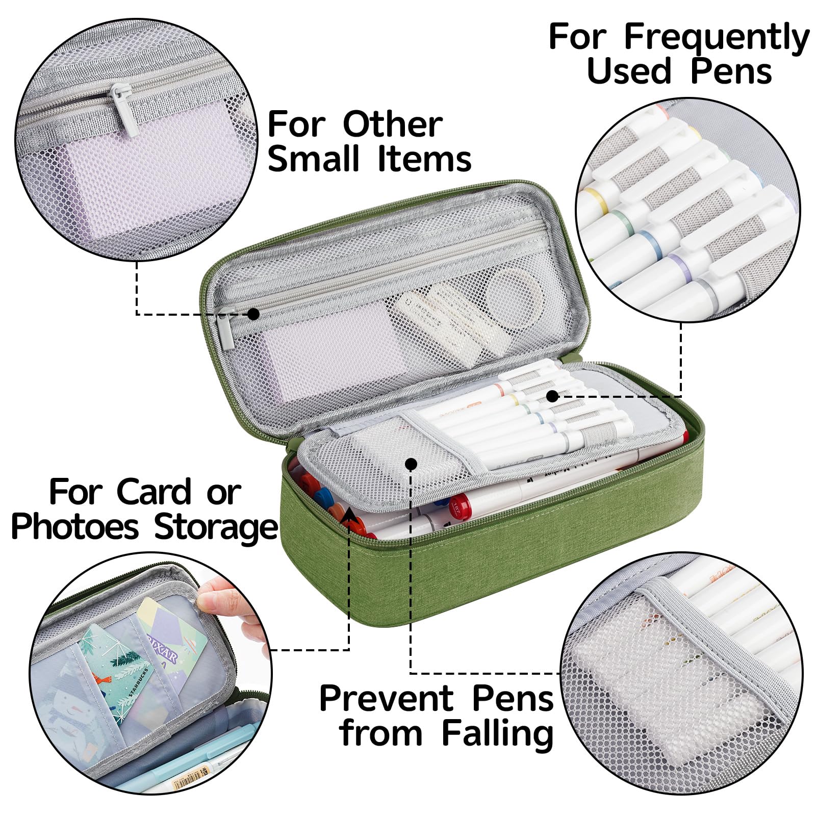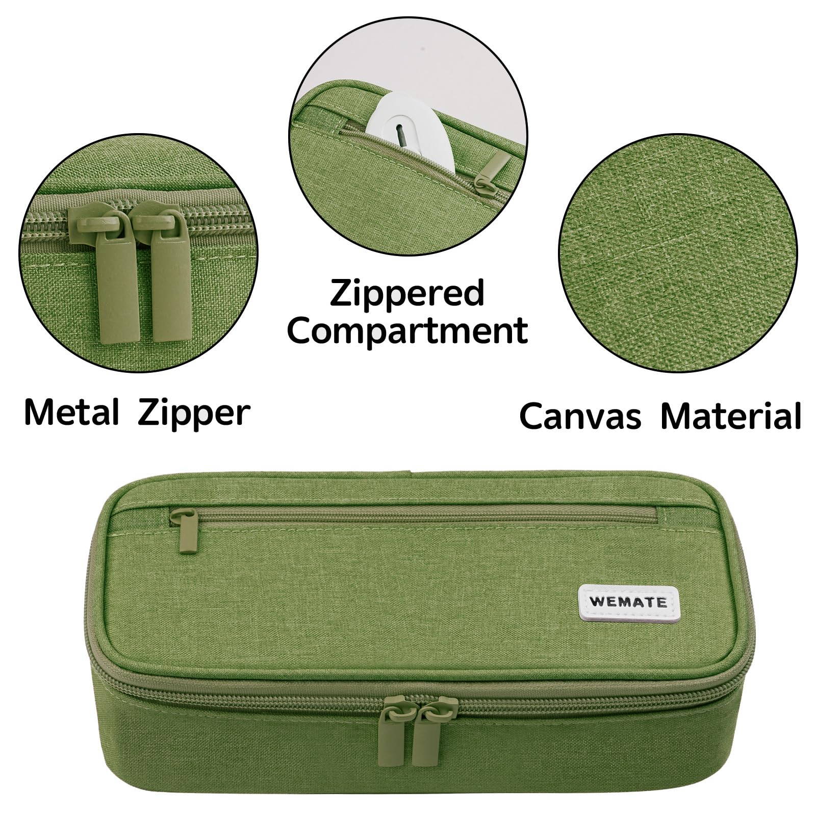 WEMATE Grosses Federmäppchen, grosses Fassungsvermögen, Federmäppchen, Schreibwaren, Stifttasche, Aufbewahrung, hohe Kapazität, Beutel, Organizer, Marker, Stifteetui für Damen und Herren, Grün