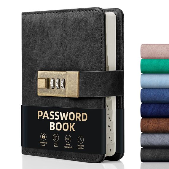 Wemate Passwortbuch Mit Schloss, Passwortbuch Mit Alphabetischen Tabs, Über 600 Passwortplätze, Passwort-Organizer, Logbuch Mit Schloss