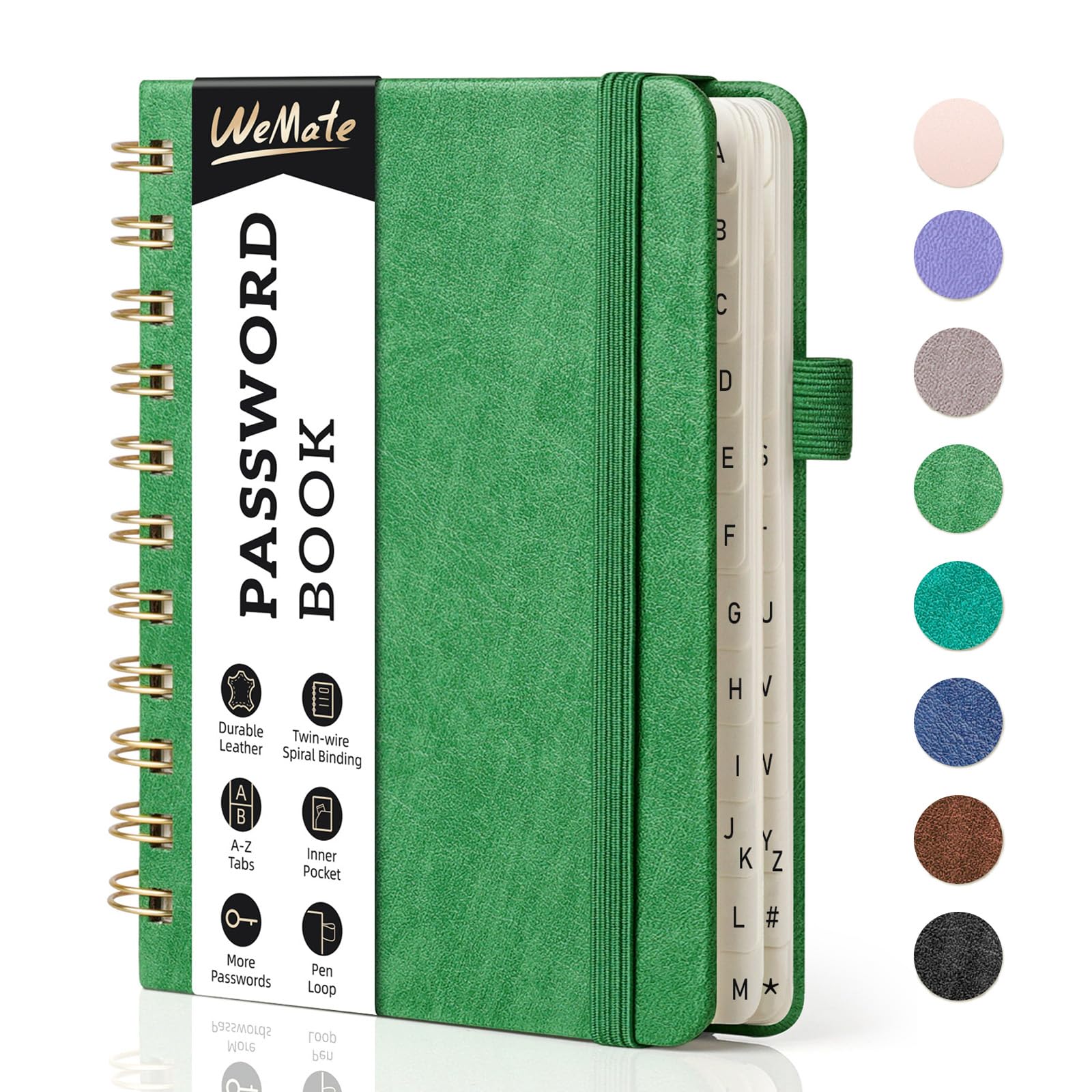 WEMATE Spiral Passwort buch mit alphabetischen Tabs, kleines Passwortbuch für Senioren, Internet-Passwort-Notizbuch Hardcover Passwort Manager Journal Logbuch A6 – 10.5 x 14.8 cm (Grasgrün)