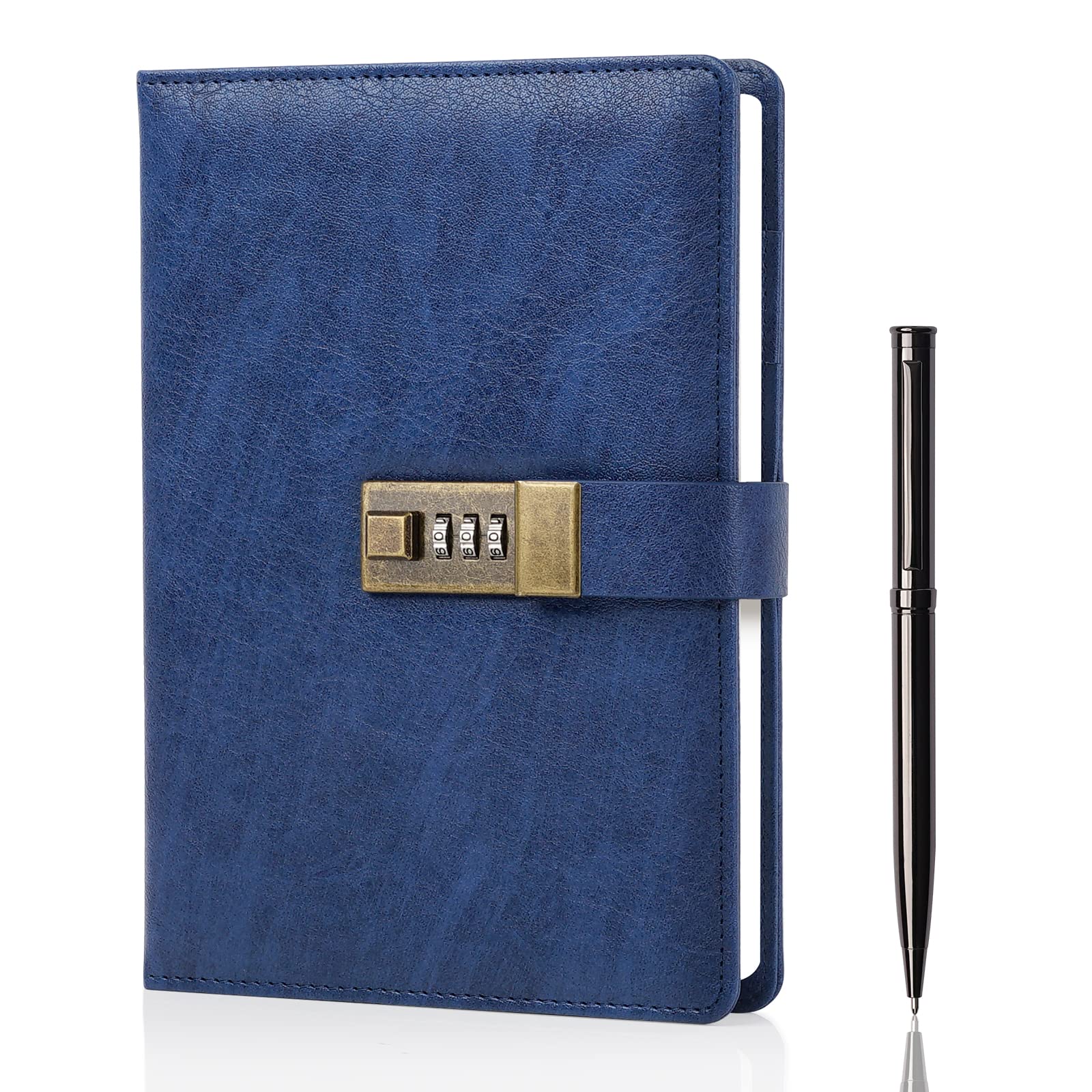 WEMATE Tagebuch mit Schloss, A5 PU Leder Journal mit Schloss 240 Seiten, Vintage Lock Journal mit Stift & Geschenkbox, abschliessbares Tagebuch für Frauen & Männer, 8.6x5.8in (Blau)