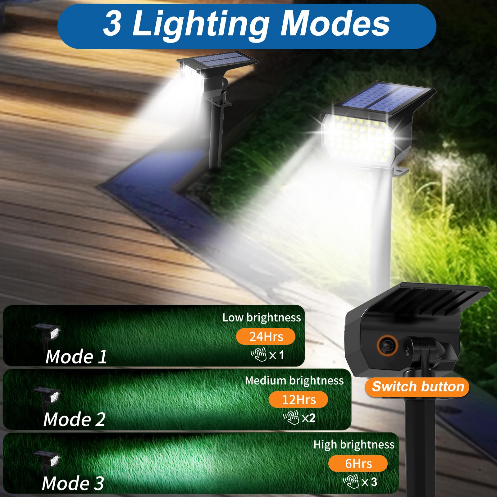 WENATY Solarlampen für Aussen, 4 Stück 46LED Solarstrahler für Aussen, 6500K Kaltweiss Solar Gartenleuchten, IP65 Wasserdicht Solar Strahler, 3 Helligkeitsmodi Solarleuchten für Garten Hof Gehweg Weg