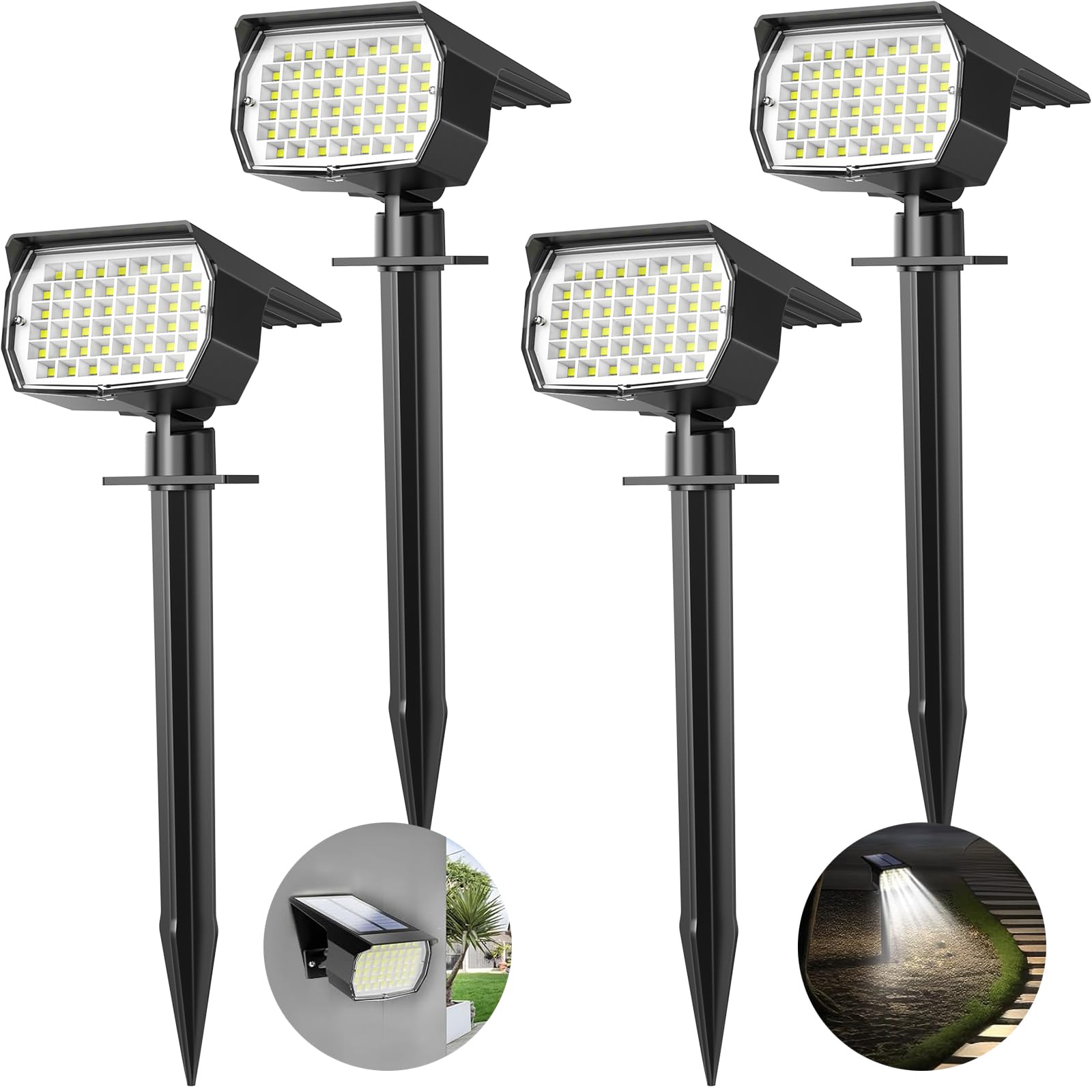 WENATY Solarstrahler für Aussen Garten, 4 Stück 46LED, Solarlampen IP65 wasserdicht 6500K Kaltweiss Solar Gartenleuchten Solarleuchten für Hof Gehweg Wege