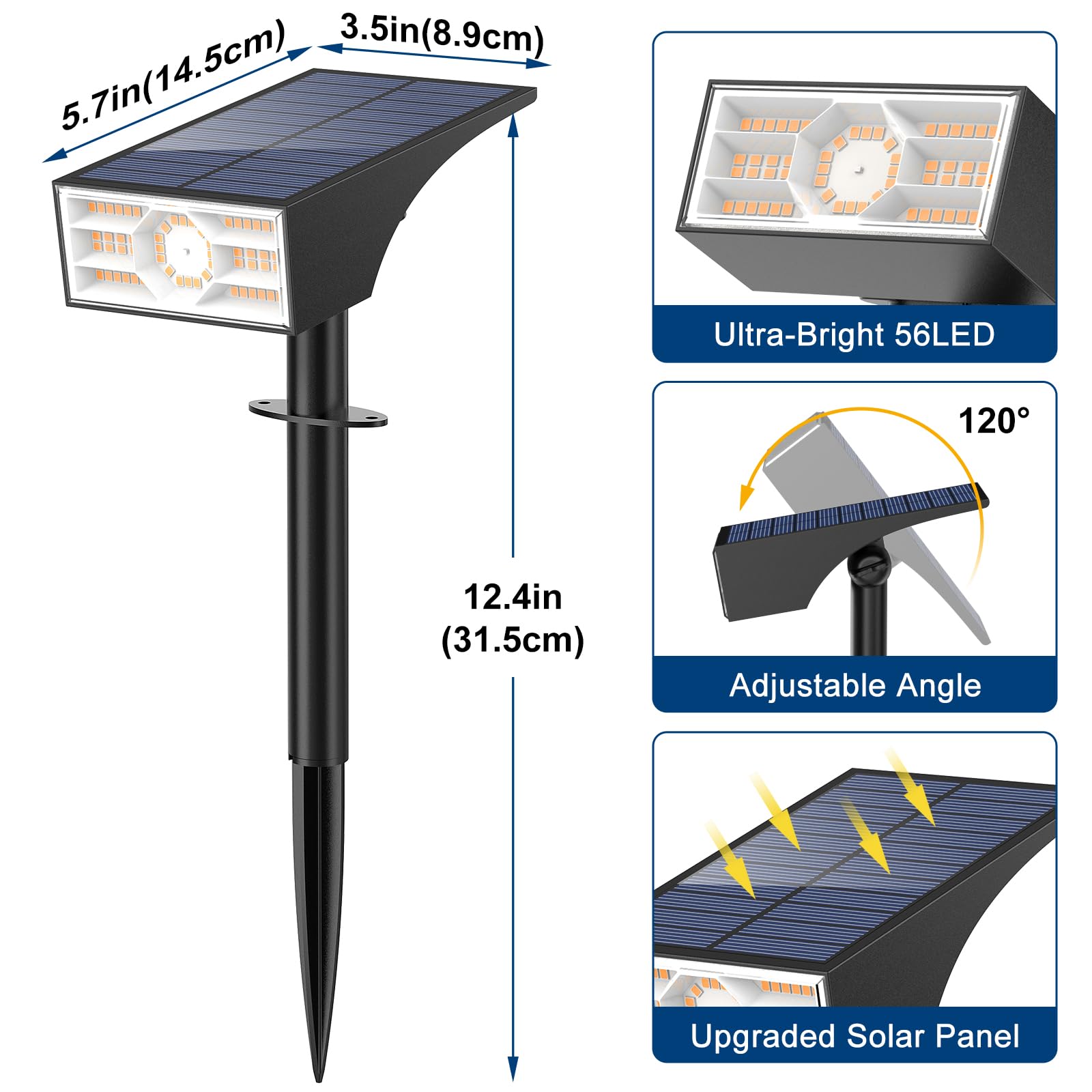 WENATY Solarlampen für Aussen, 56 LED Solarstrahler für Aussen Garten 3000K Warmweiss LED Solar Strahler, 4 Helligkeitsmodi Solar Gartenleuchten IP65 Wasserdicht Solarleuchten für Weg Hof Gehweg【2 Stück】