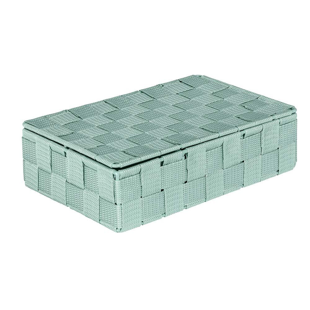 WENKO Aufbewahrungskorb mit Deckel Adria Mint Klein - Badkorb mit Deckel und 4 Fächern, Polypropylen, 26 x 7.5 x 17 cm, Minzgrün