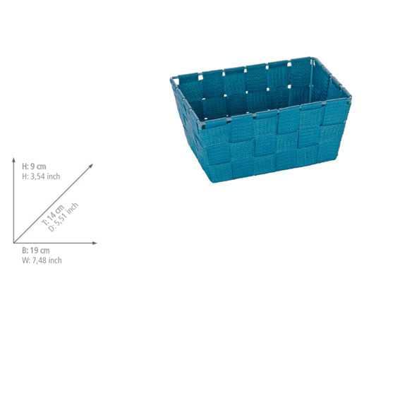 WENKO Aufbewahrungskorb Adria Mini Petrol - Badkorb, rechteckig, Kunststoff-Geflecht, Polypropylen, 19 x 9 x 14 cm, Petrol Mini Long