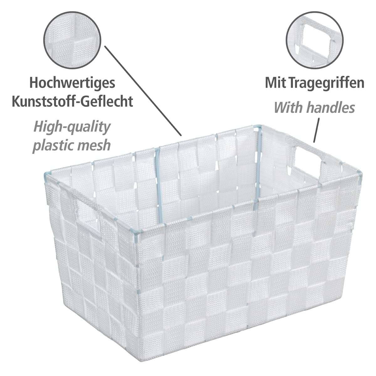WENKO Aufbewahrungskorb Adria S Weiss - Badkorb Fassungsvermögen: 6.24 l, Polypropylen, 30 x 15 x 20 cm, Weiss